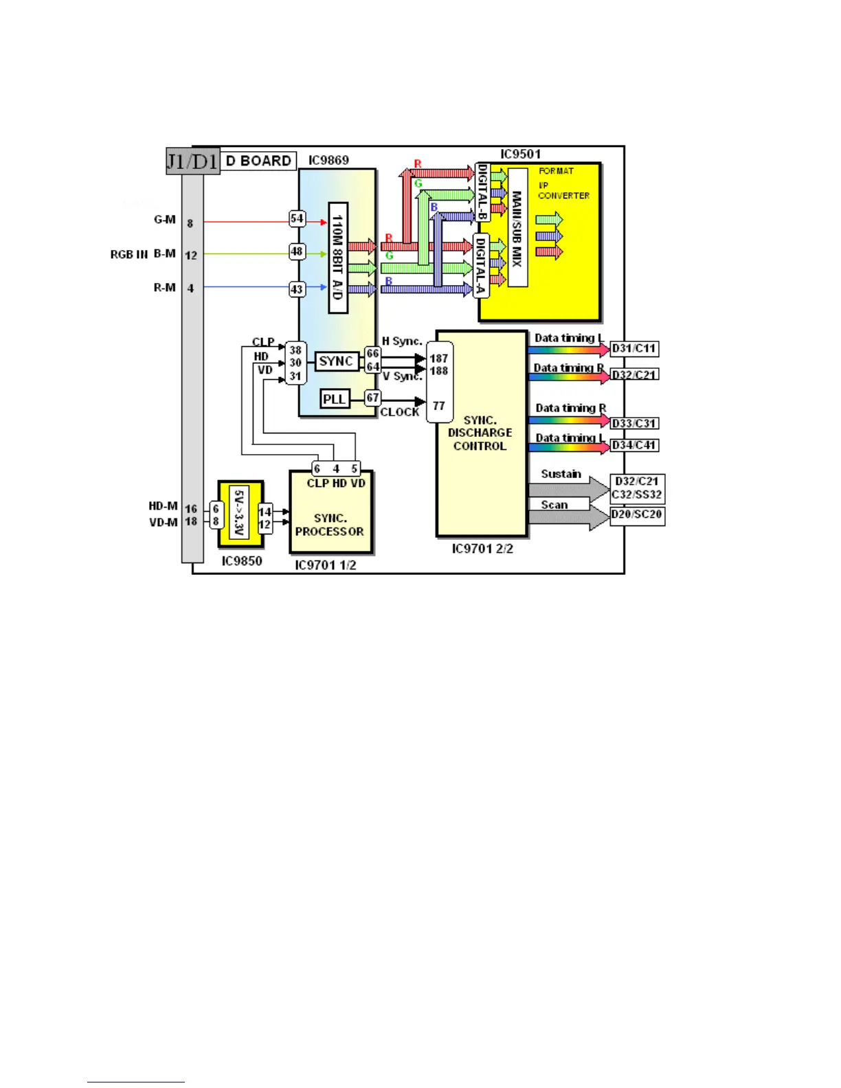 he horizontal and vertical sync signals enter the D-Board via pins 16 and 18 of the