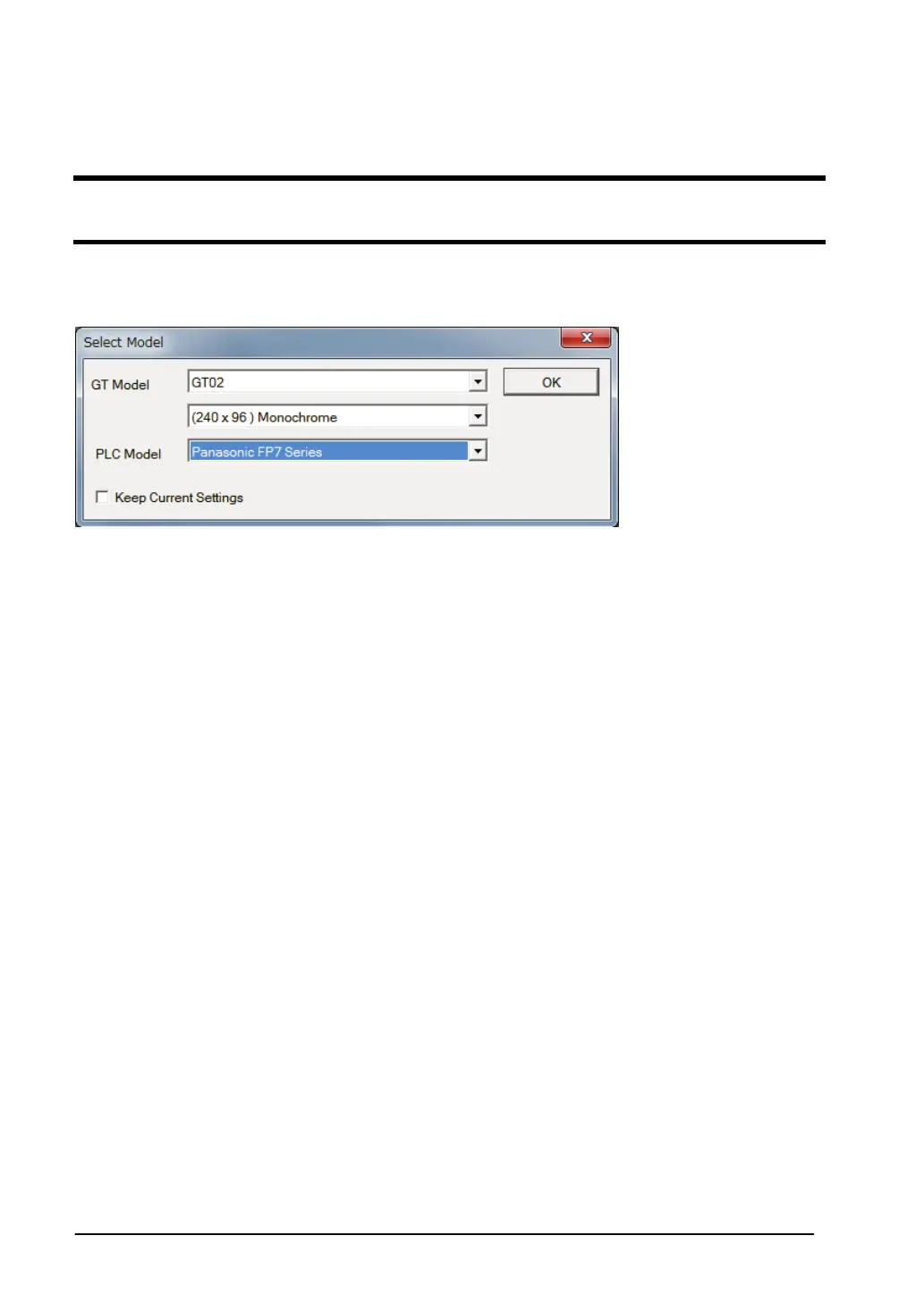 When selecting a GT model that is not supported for FP7, "Panasonic FP7 series" cannot be selected for