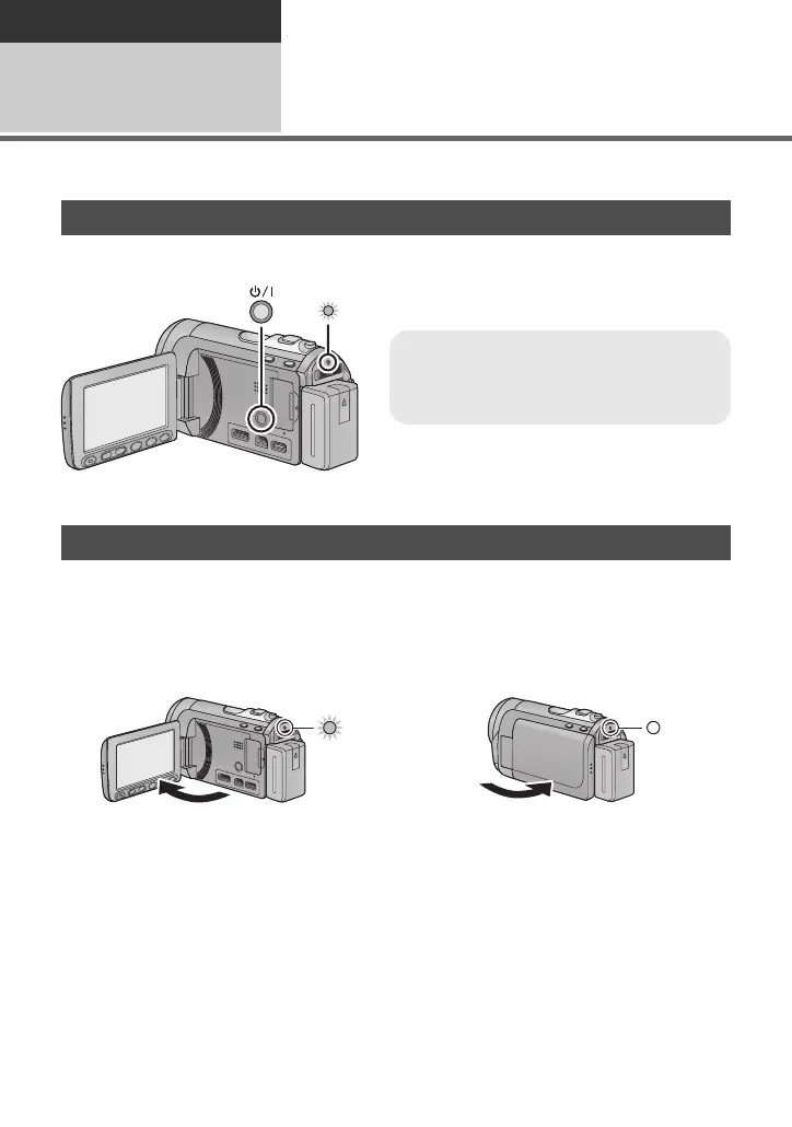 ≥ The power will not turn off while recording motion pictures even if the LCD monitor is