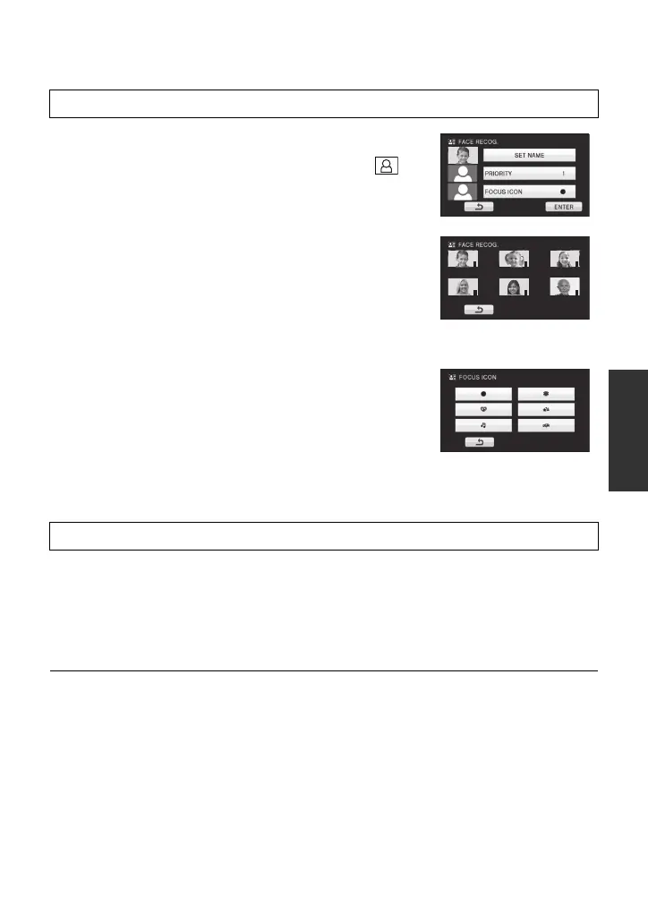 [RECORD SETUP] # [FACE RECOG.] # [SET] # [DELETE] or [DELETE ALL]