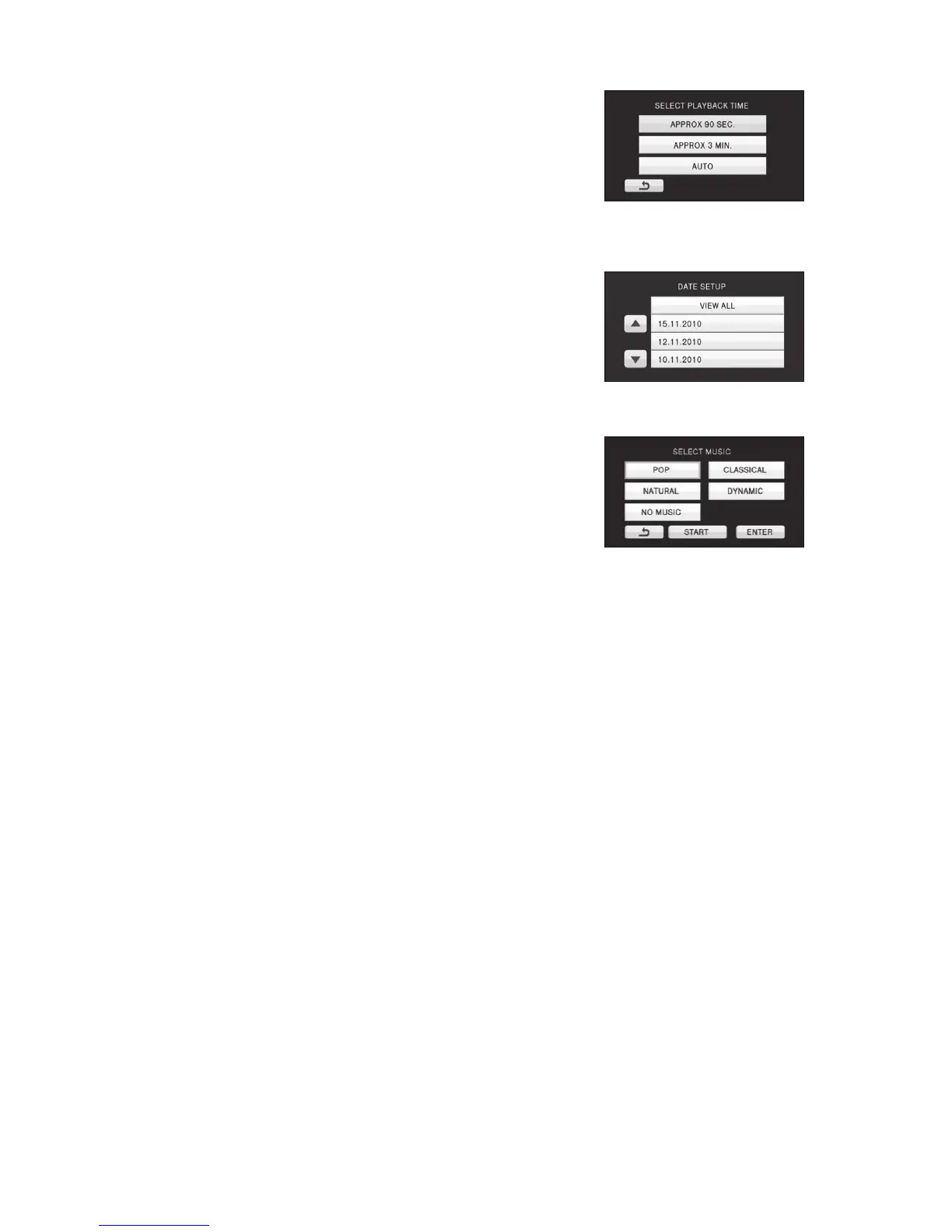 ≥ When [NO MUSIC] is selected, the audio recorded at