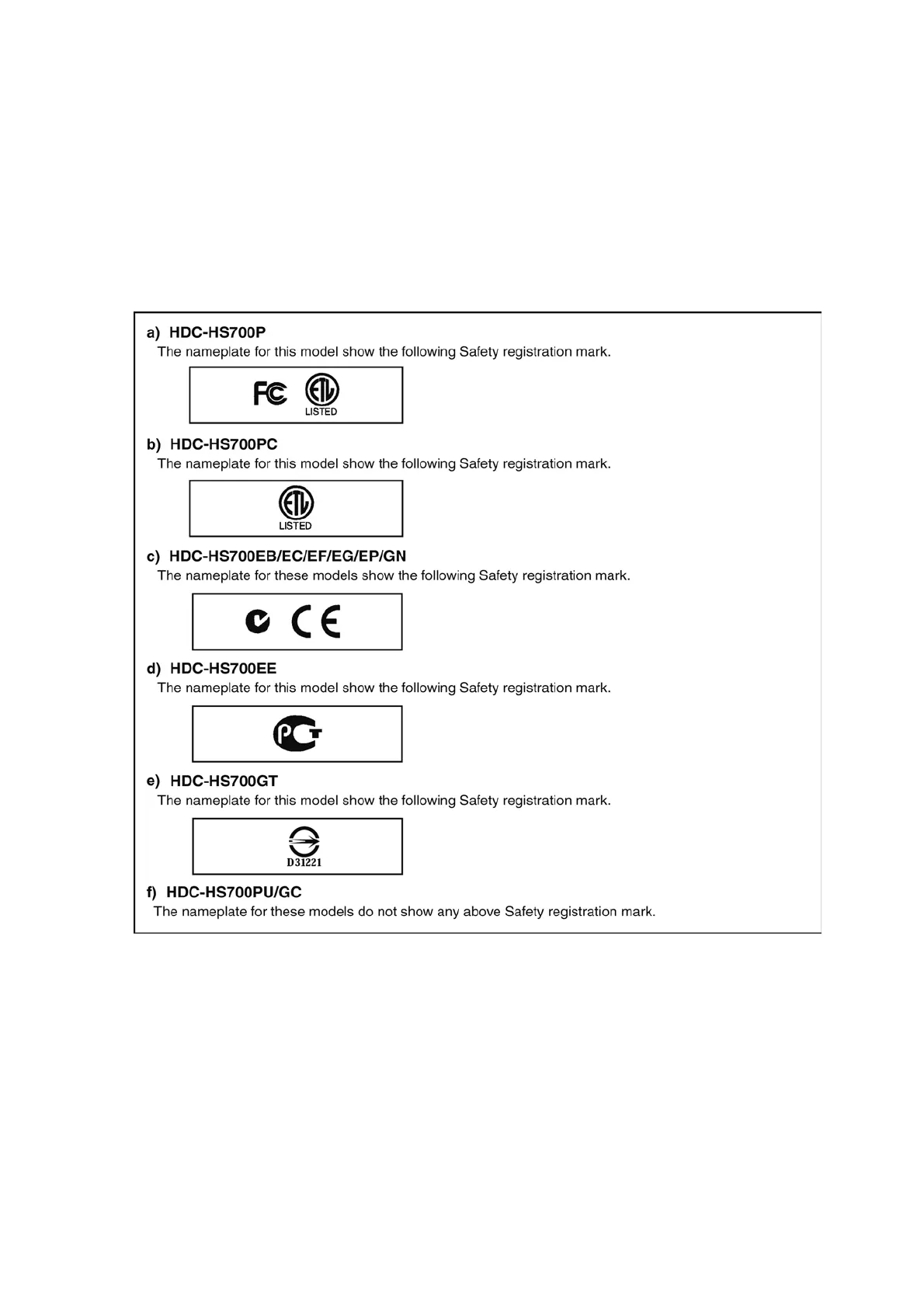 • f) HDC-HS700PU/GC
