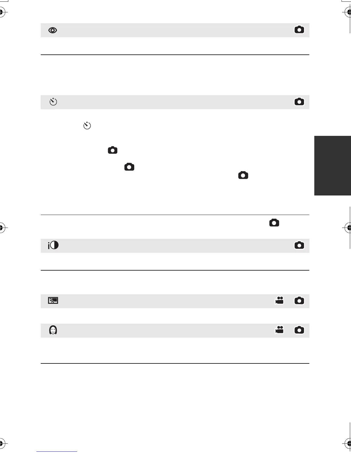 ≥ When faces are detected in the intelligent auto mode, the red eye reduction is set to on.