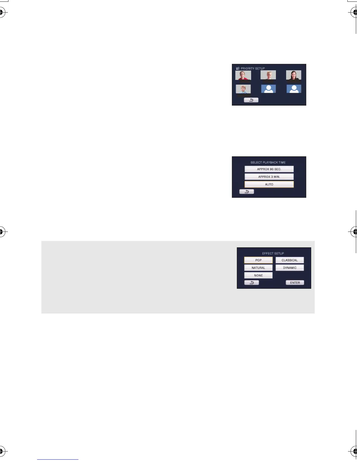 ≥ Playback time may become shorter than the setting, or it