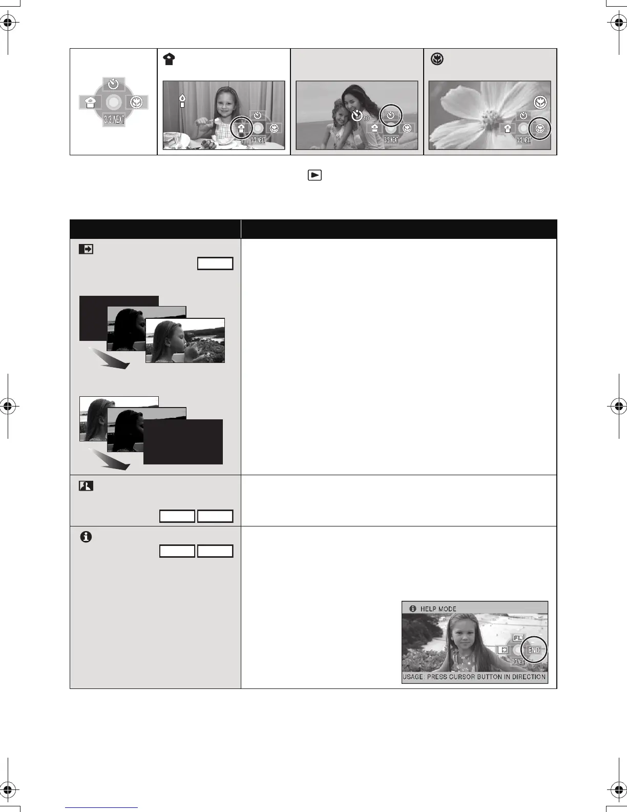 ≥ If you turn off the power or set the mode dial to , help mode, colour night view, backlight