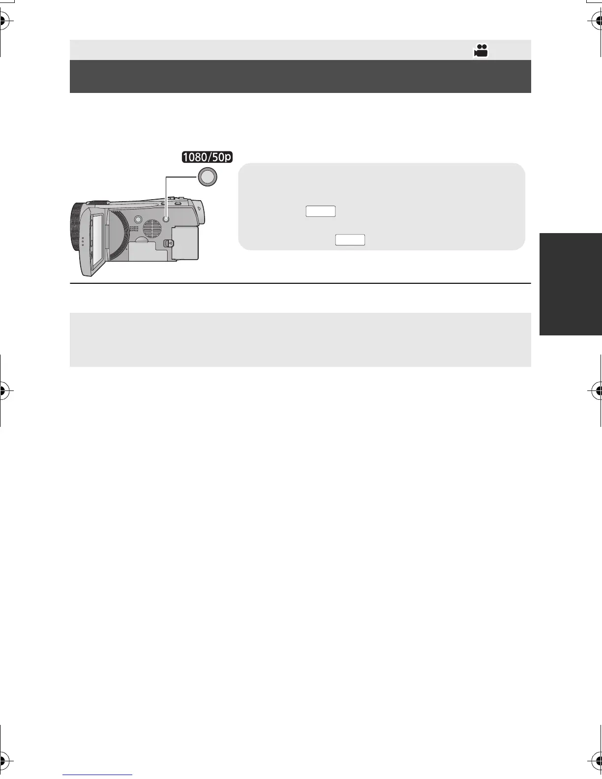 To set to 1080/50p recording mode, press and hold the