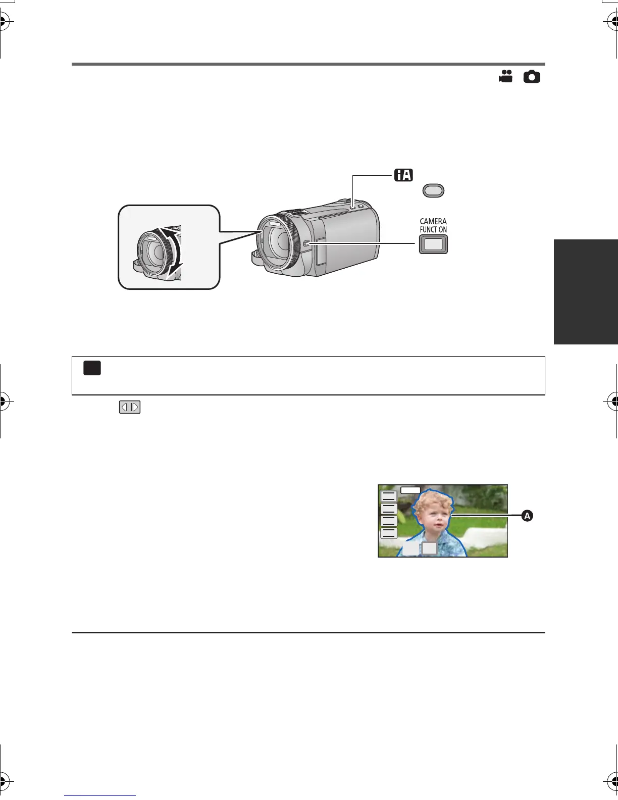 ≥ Press the iA/MANUAL button or the CAMERA FUNCTION button to switch to manual