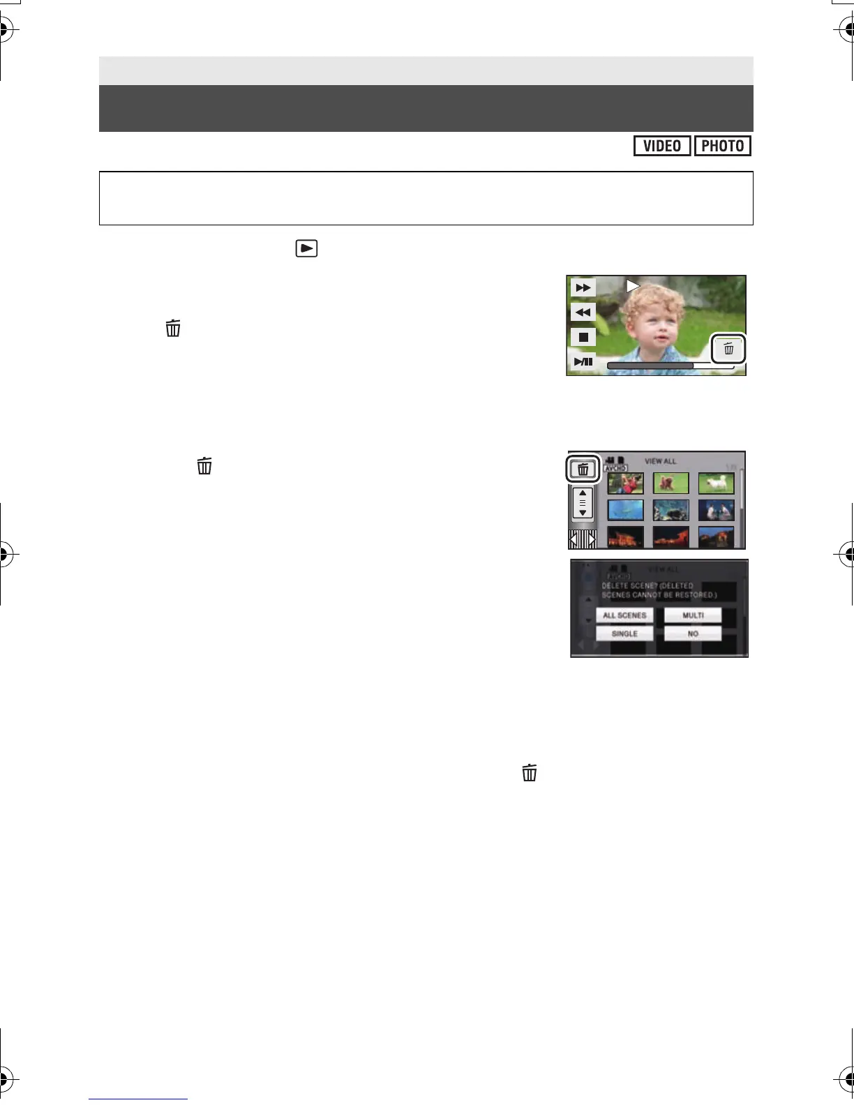 ≥ To continuously delete other scenes/still pictures, repeat steps 3-4.