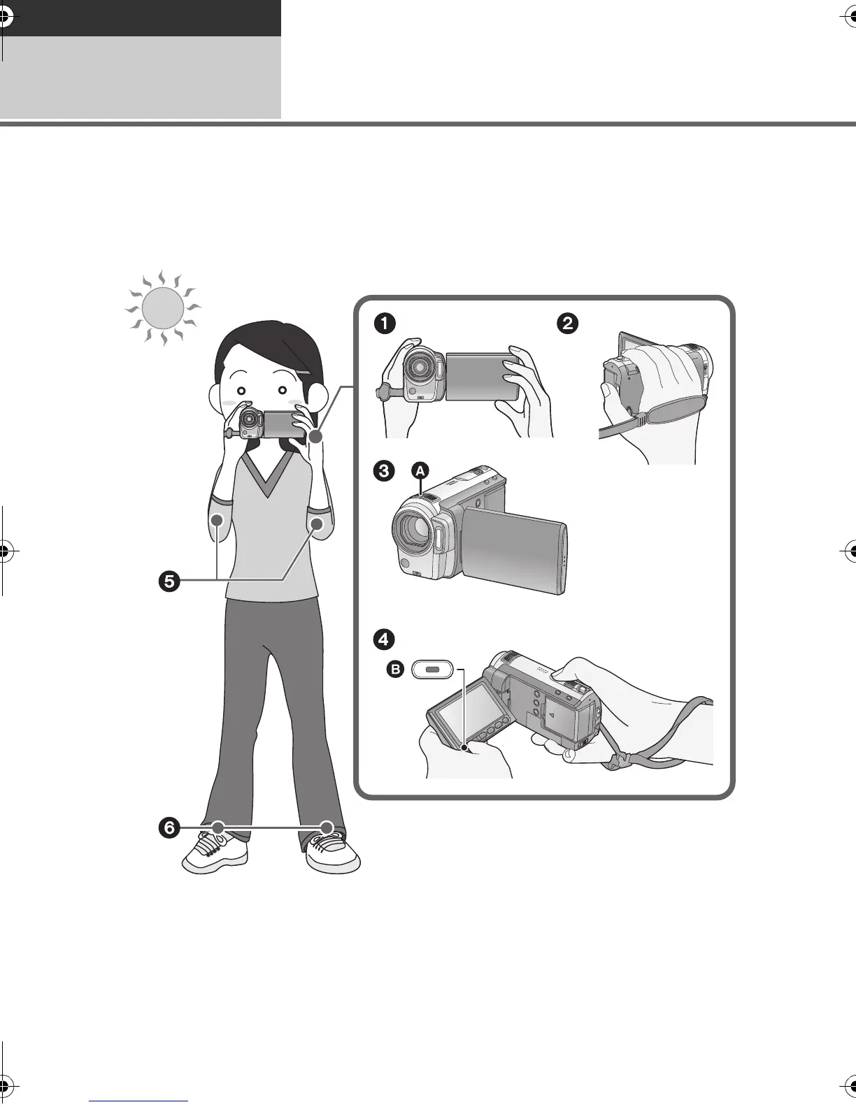4 It is convenient to use the Sub-recording Start/Stop button B when holding the unit around your