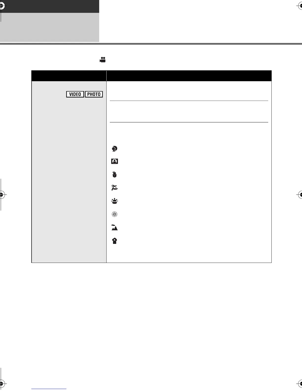[RECORD SETUP] # [SCENE MODE] # desired setting