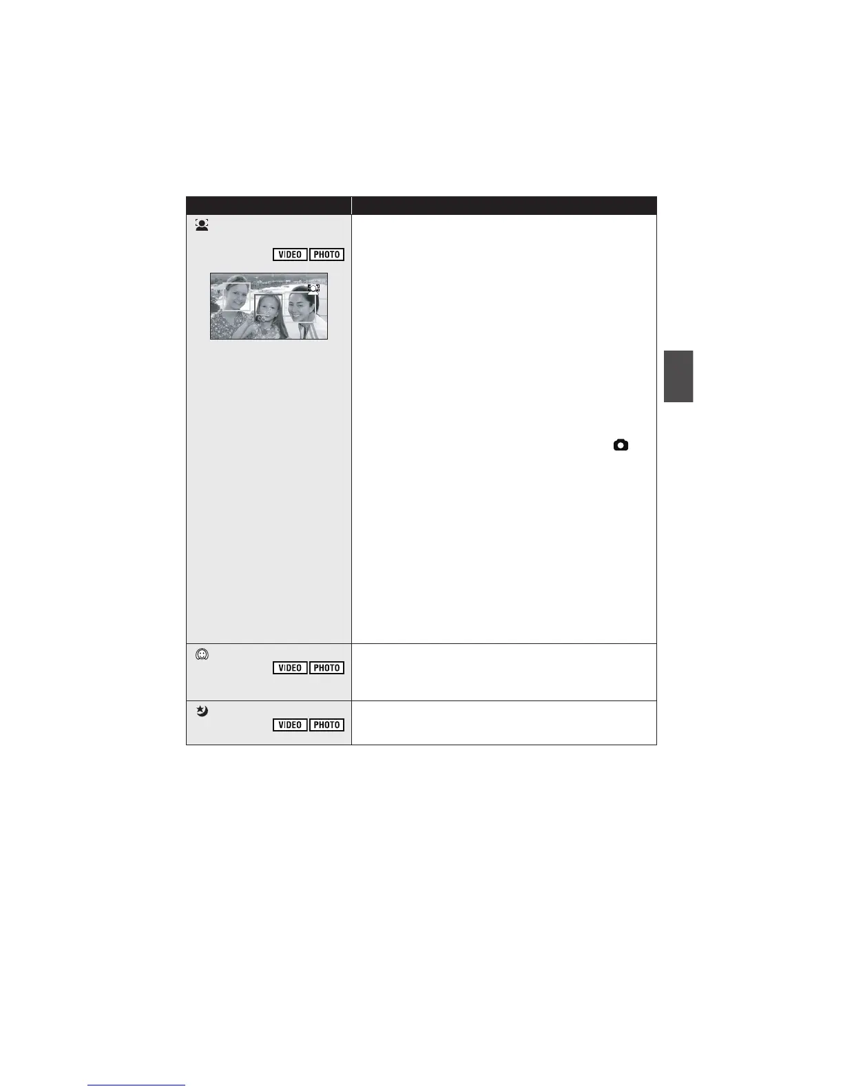 (prioritized face framing). Focus and adjustment of brightness