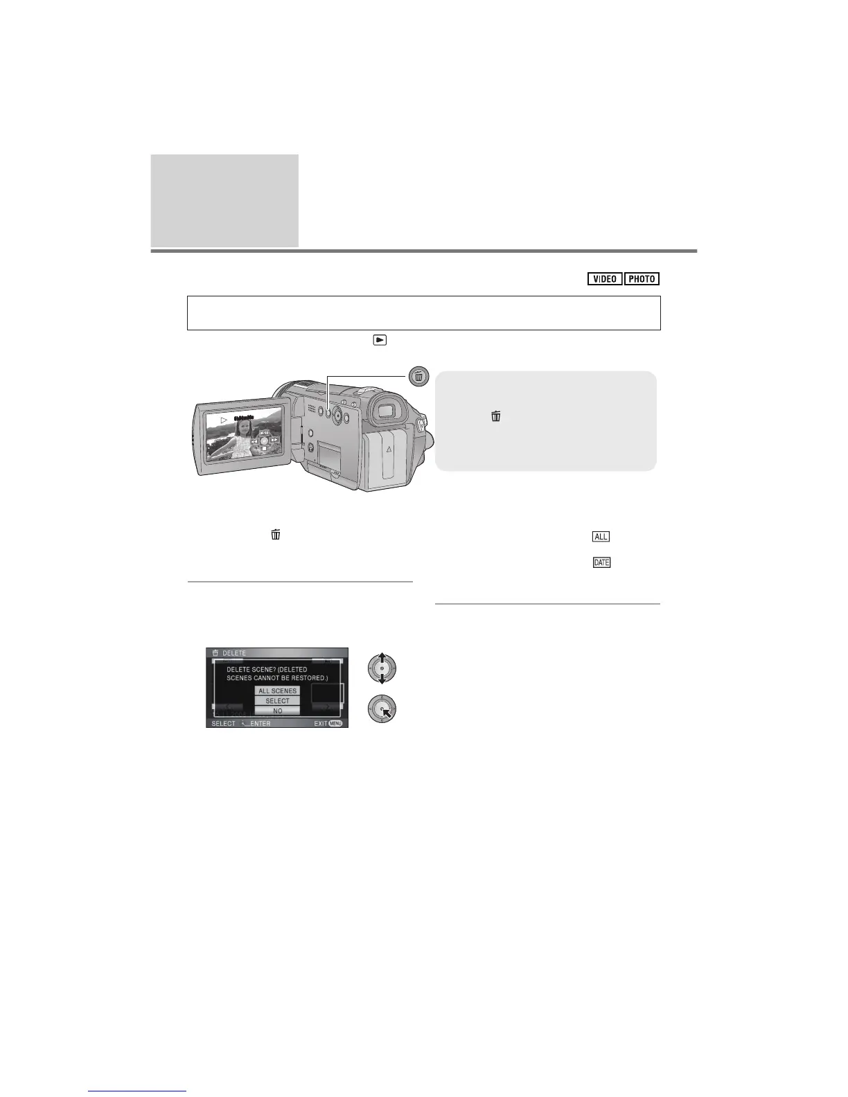 Deleted scenes/still pictures cannot be restored, so perform appropriate confirmation of the