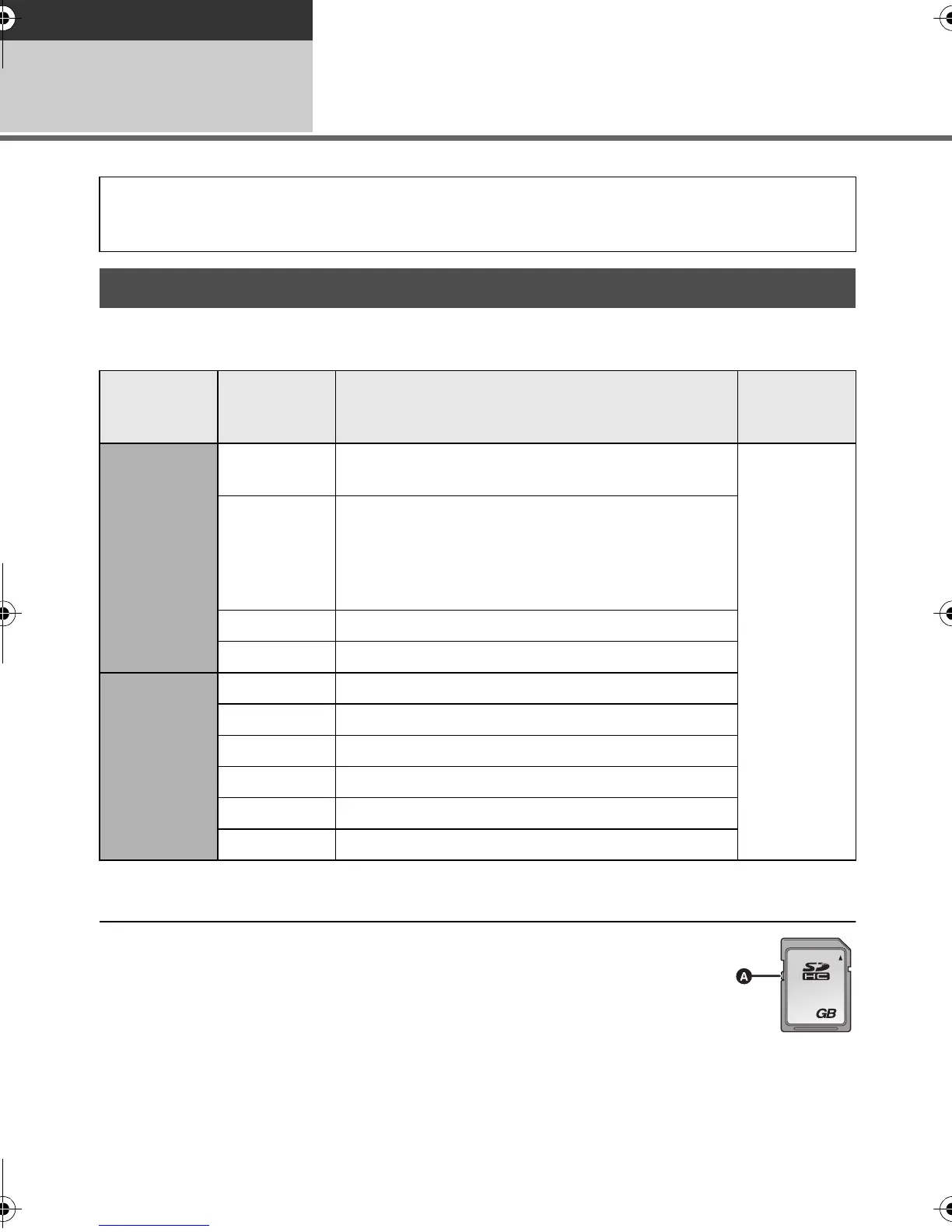 Use SD cards conforming to Class 4 or higher of the SD Speed Class Rating* for motion picture