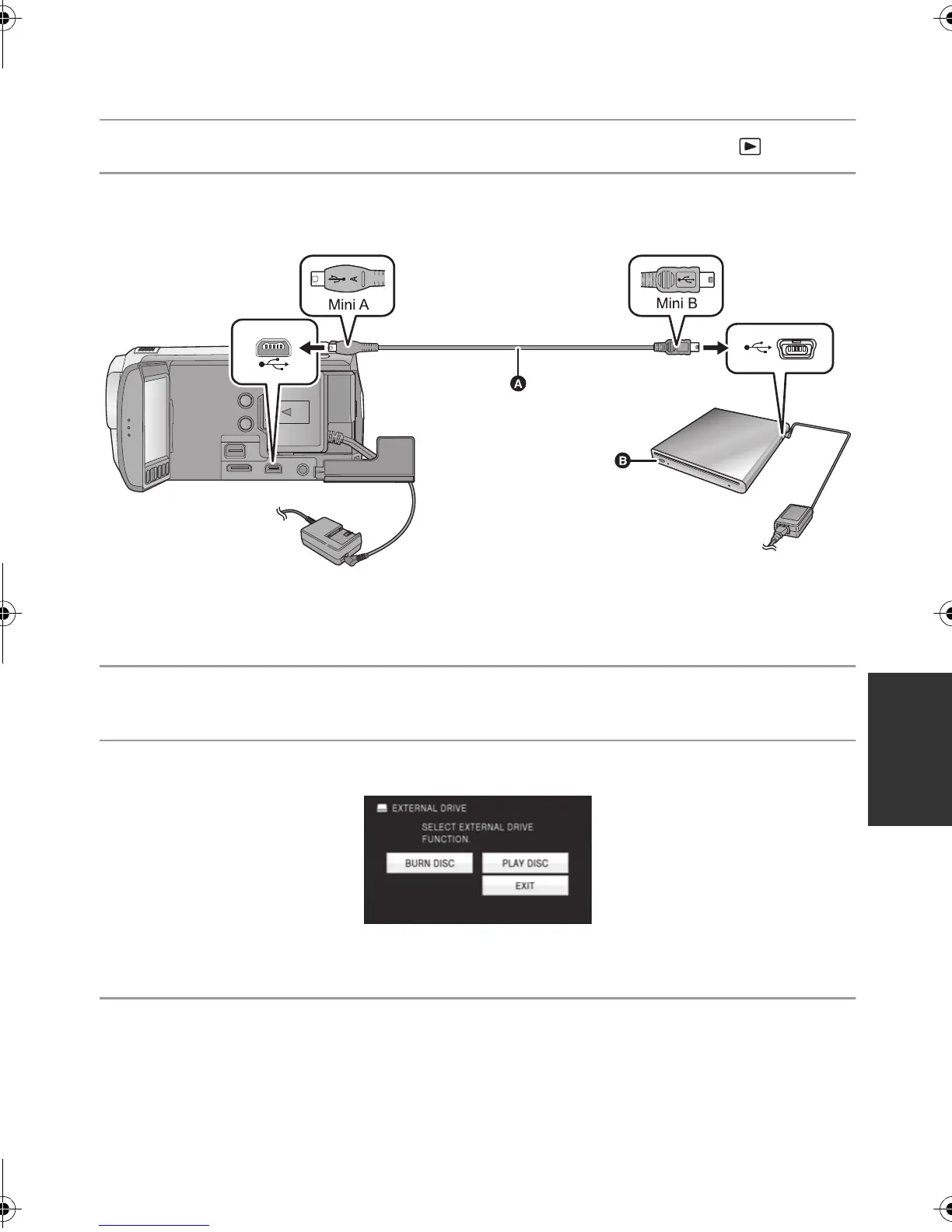 3 Connect this unit to the DVD burner with the Mini AB USB Connection
