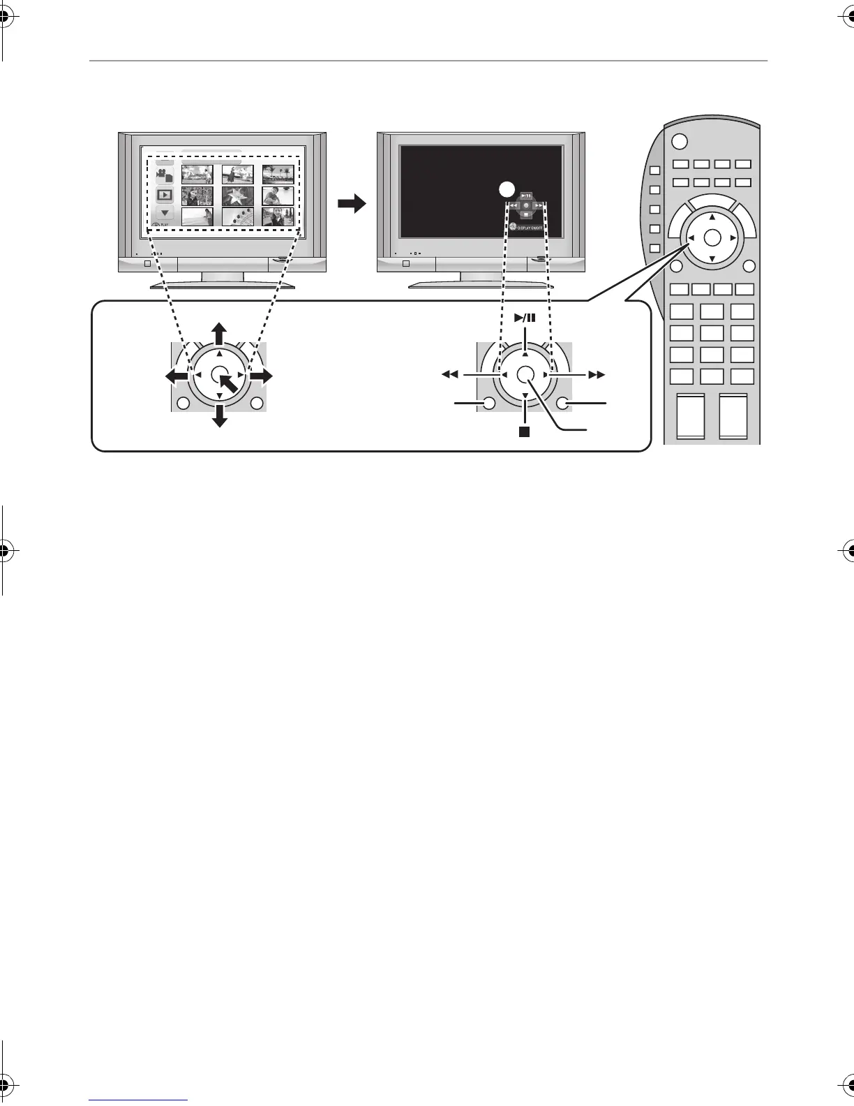 1) Press the button up, down, left or right to select a scene or still picture to be played back, and then