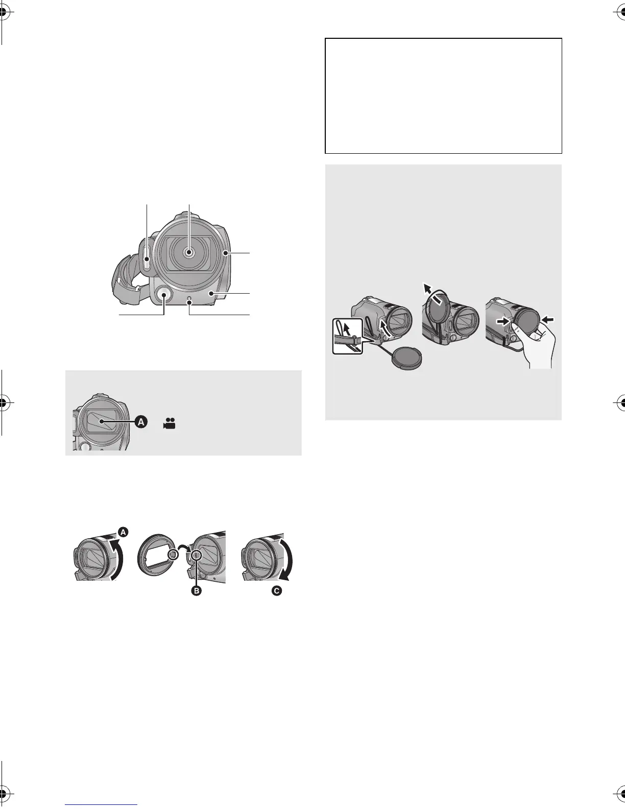 ≥ To attach or remove the lens cap, hold both