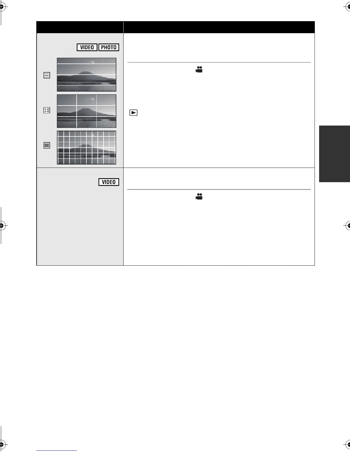 [VIDEO SETUP] # [GUIDE LINES] # desired setting