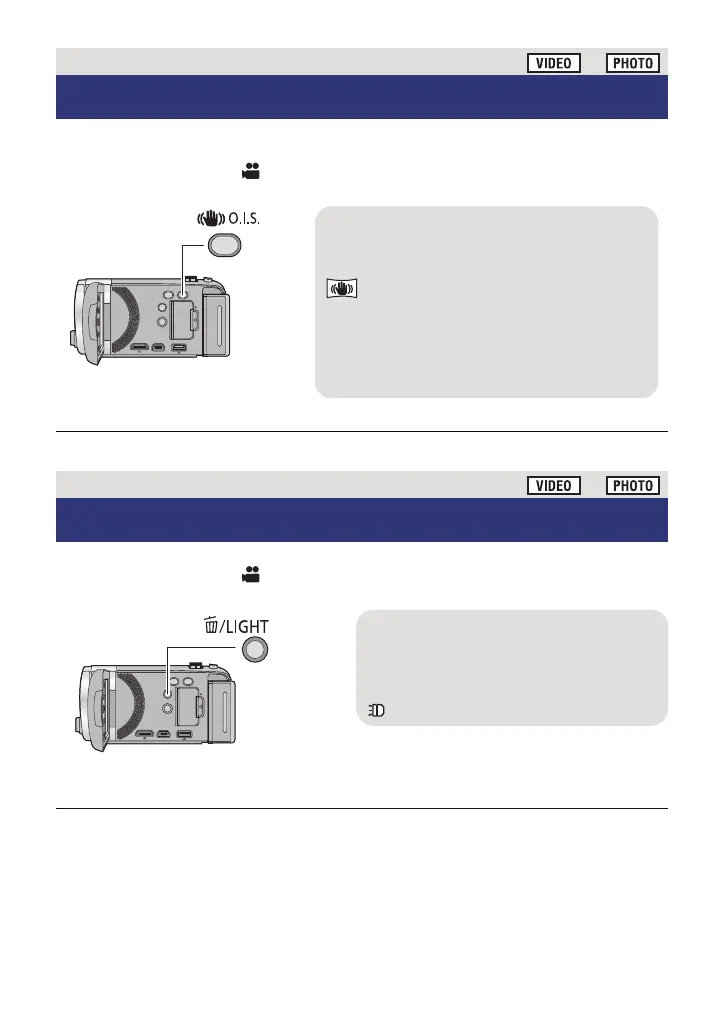 ≥ When the video light is in use, the recordable time when using the battery is shortened.