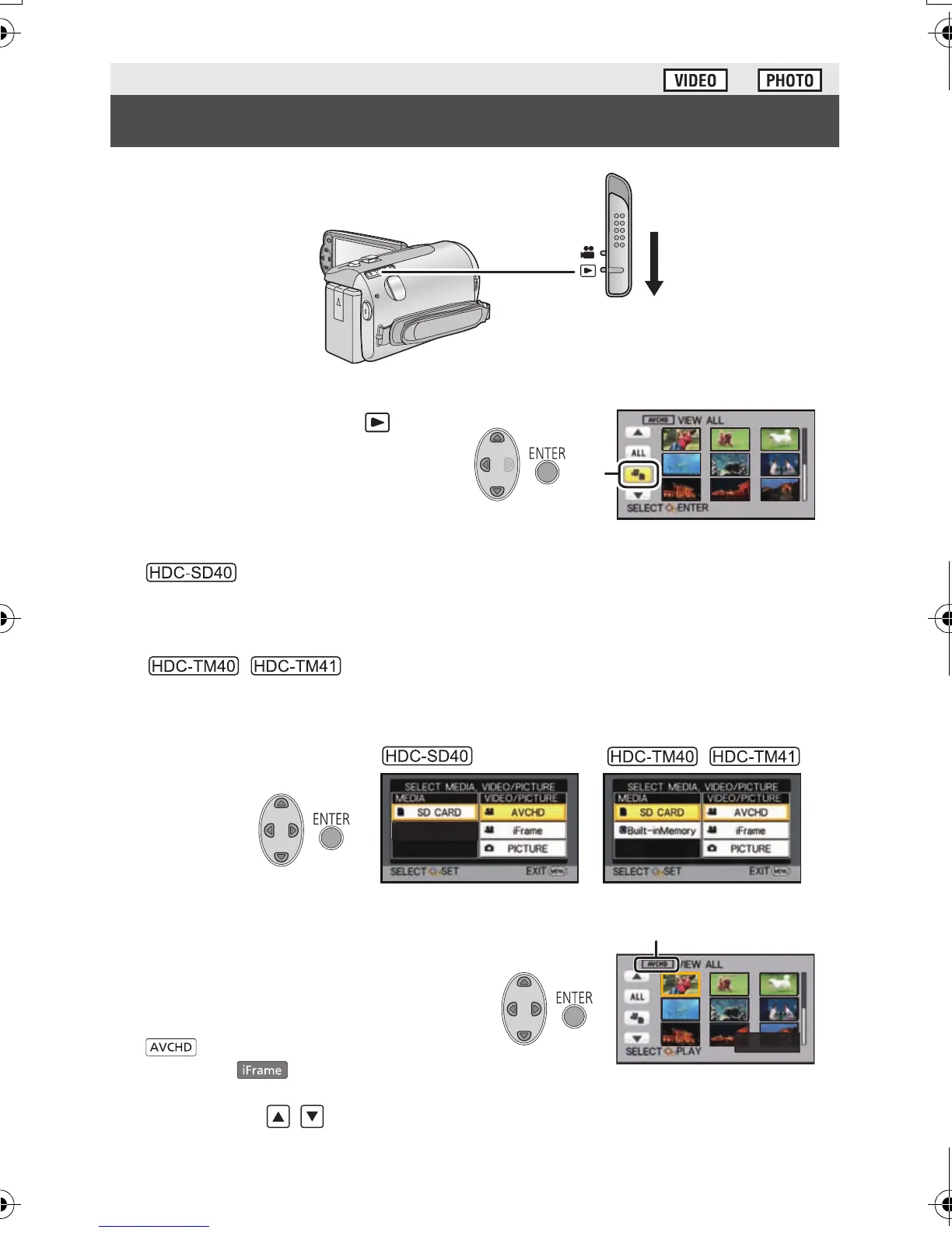 Select the [MEDIA] and [VIDEO/PICTURE] you wish to play back,