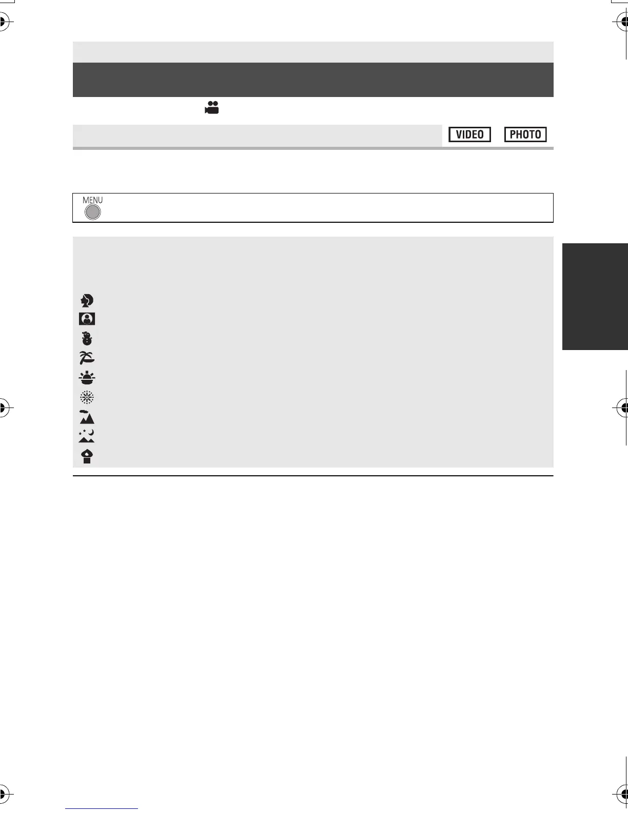 : [RECORD SETUP] # [SCENE MODE] # desired setting