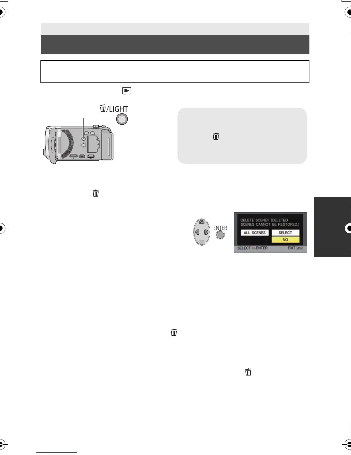 ≥ To continuously delete other scenes/still pictures, repeat steps 3-4.