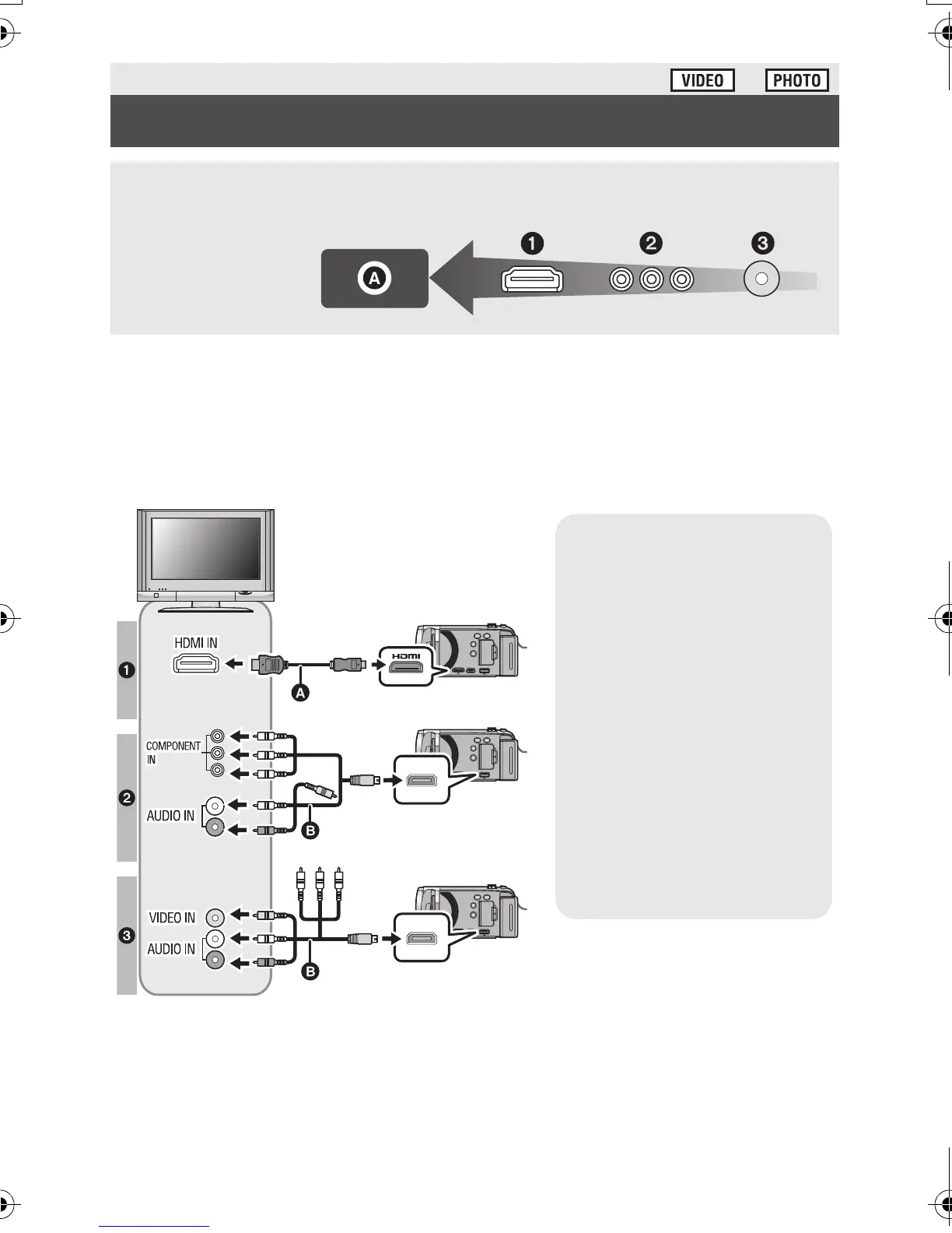 ≥ Use the AV multi cable (supplied) or HDMI mini cable (optional) and check the output
