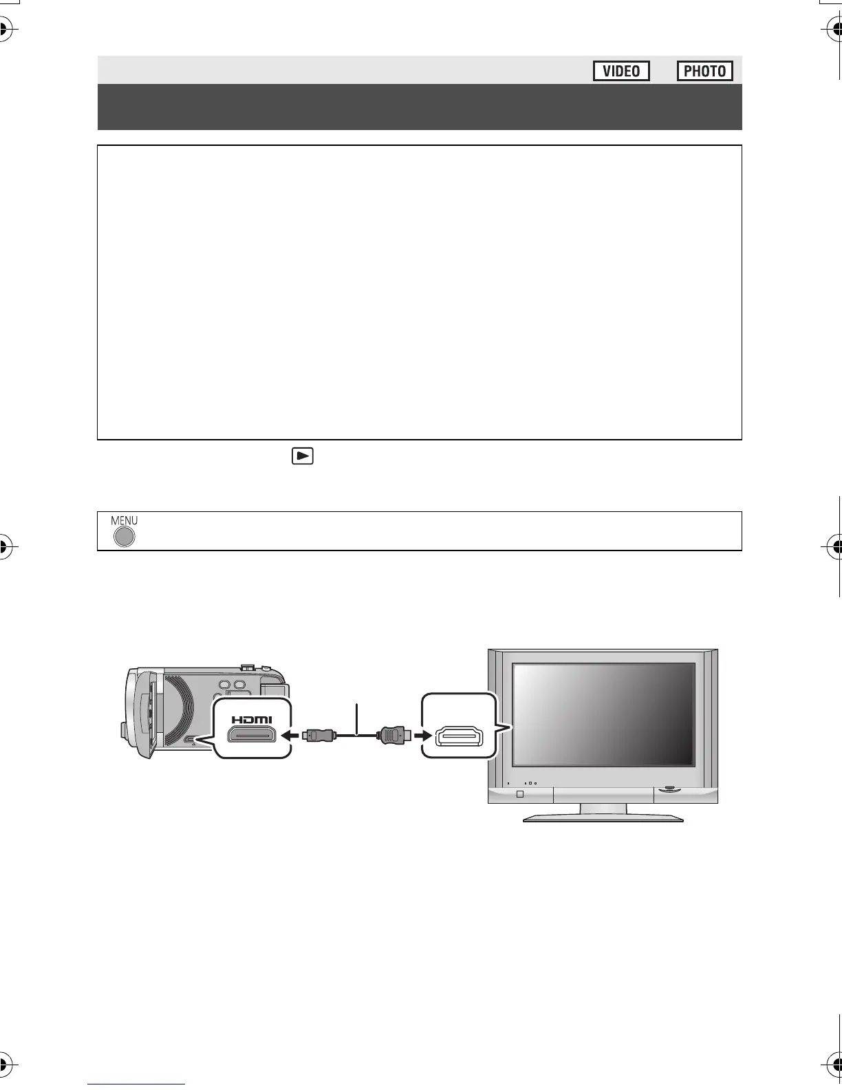 ≥ Always use a genuine Panasonic HDMI mini cable (RP-CDHM15, RP-CDHM30; optional).