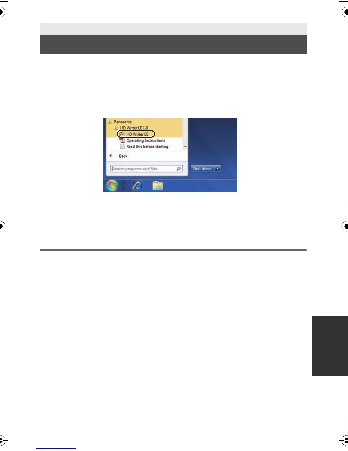 Select [Start] # [All Programs] # [Panasonic] # [HD Writer LE 1.0] #