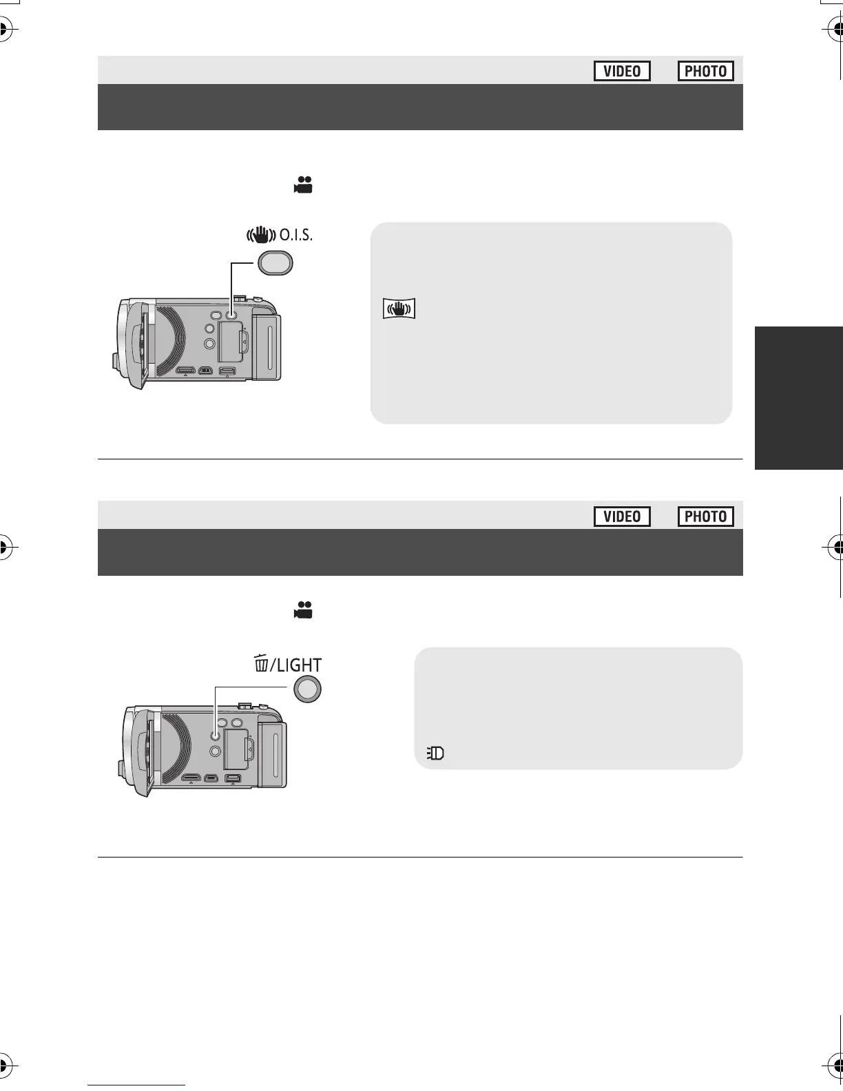 ≥ When the video light is in use, the recordable time when using the battery is shortened.