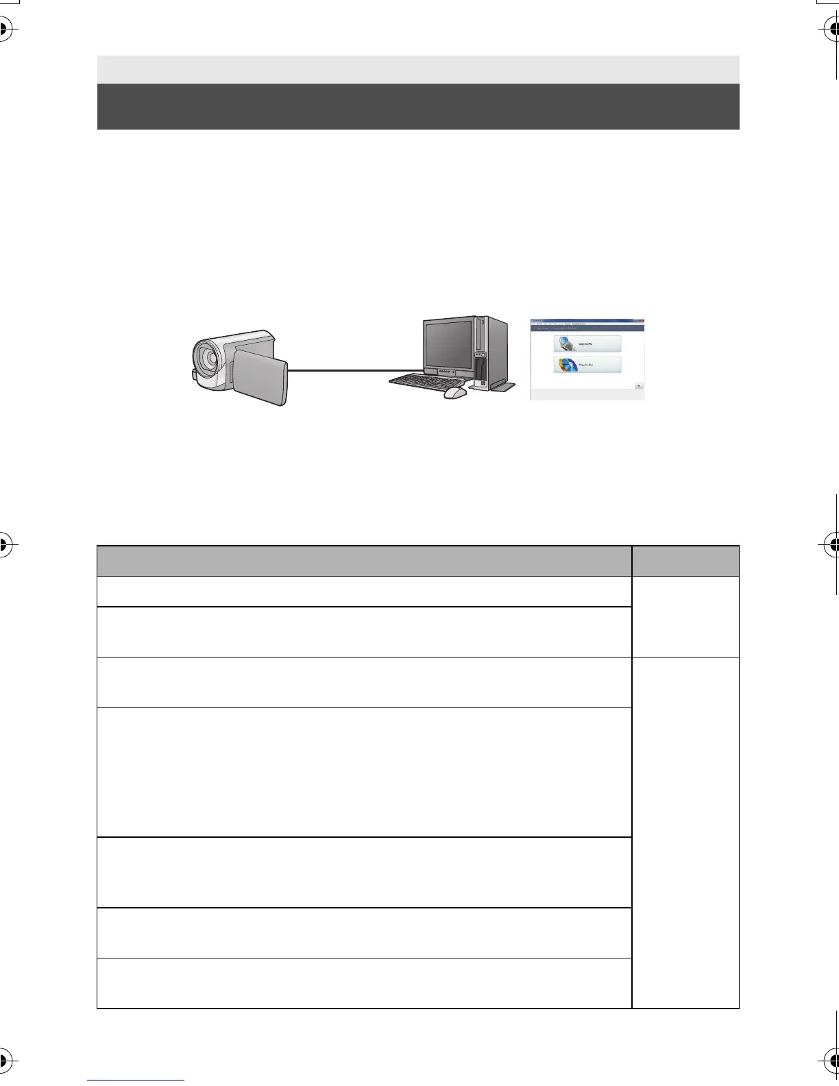 You can copy motion/still picture data to the HDD of PCs.