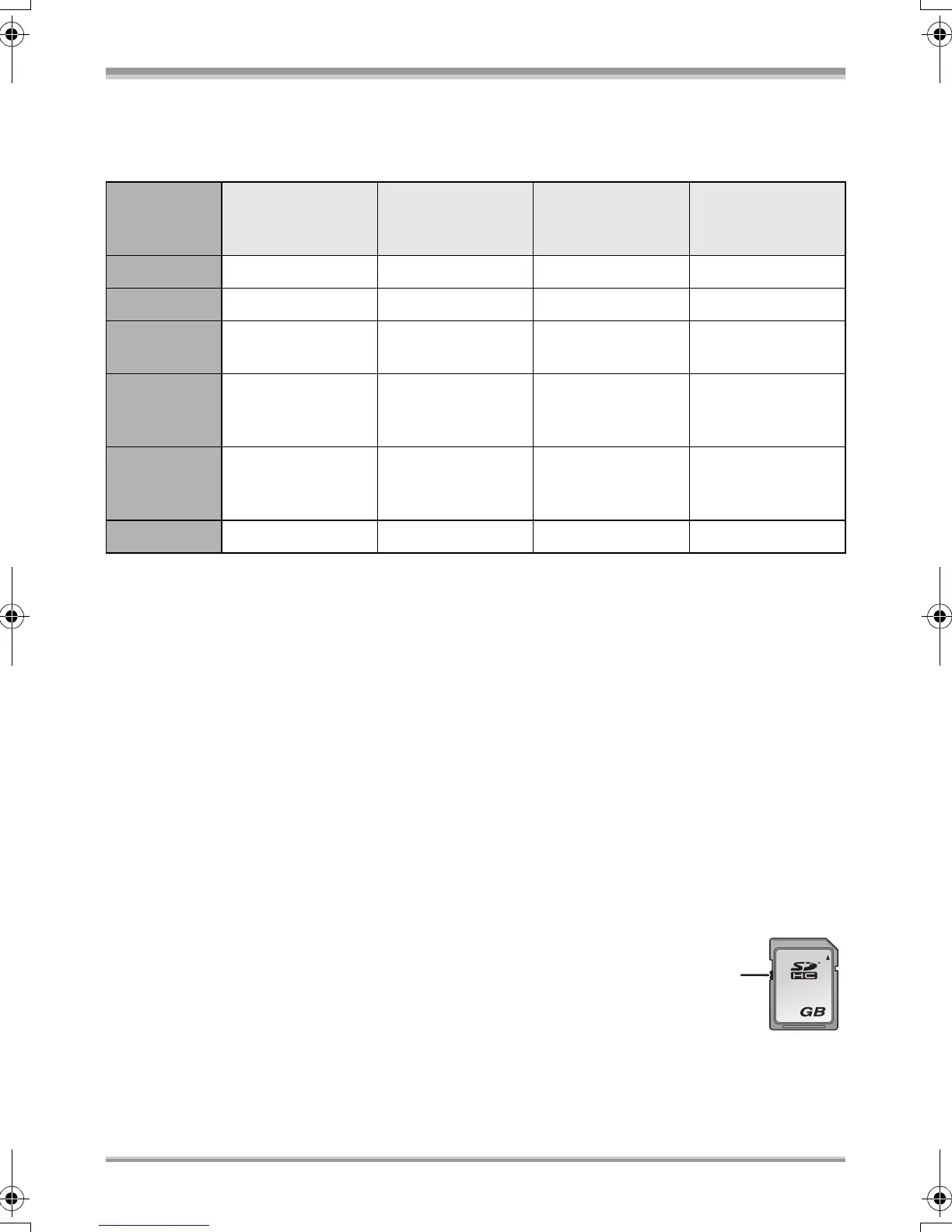 ≥ Operation in motion picture recording is not guaranteed with an SD card memory from 32 MB to 8 GB