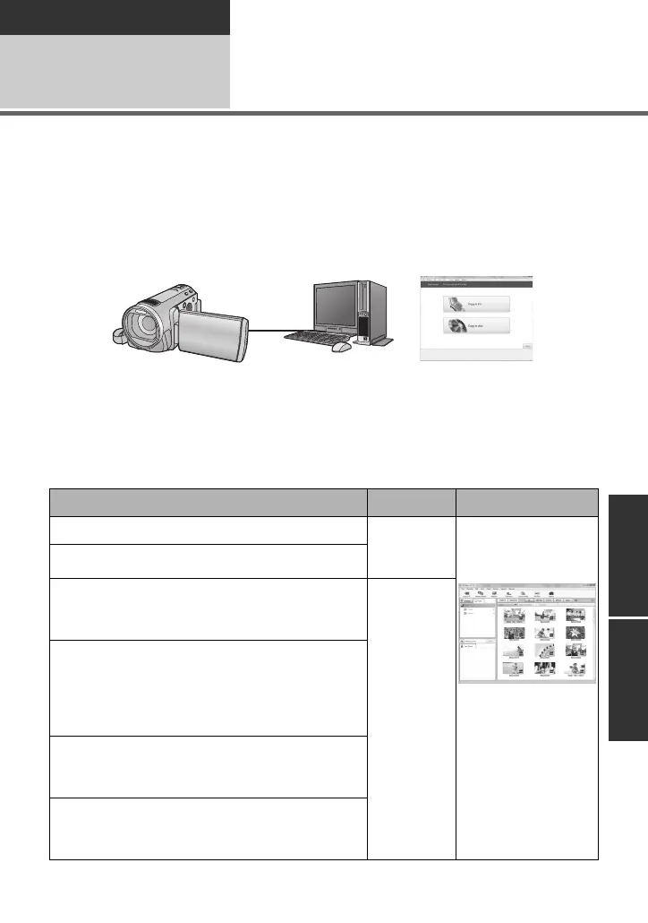 You can copy motion/still picture data to the HDD of PCs.