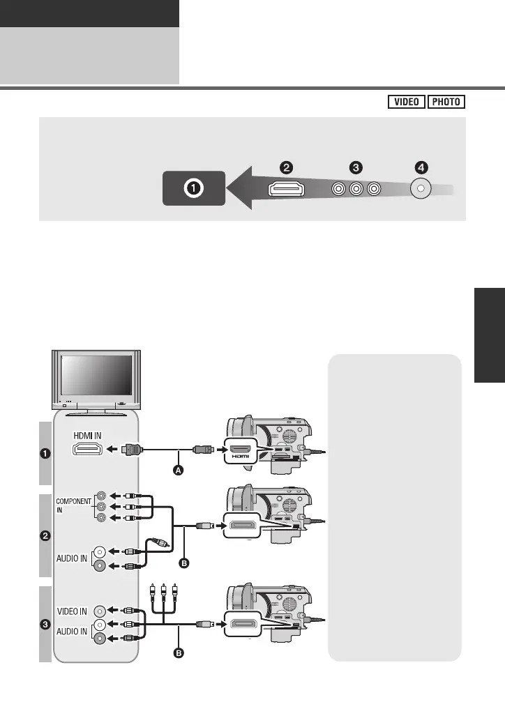 ≥ Use the supplied AV multi cable. Check the output settings when connecting the
