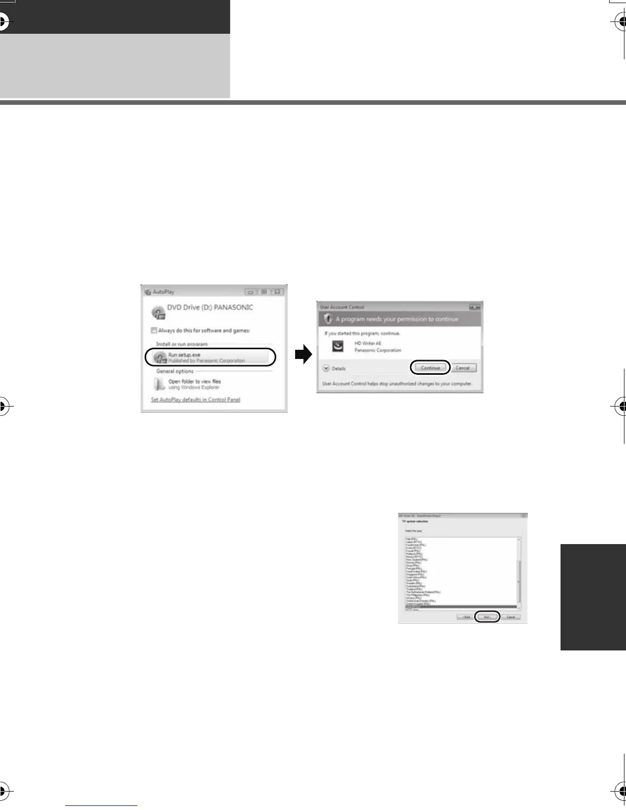 ≥ The following screen is displayed automatically. Click [Run setup.exe] # [Continue].