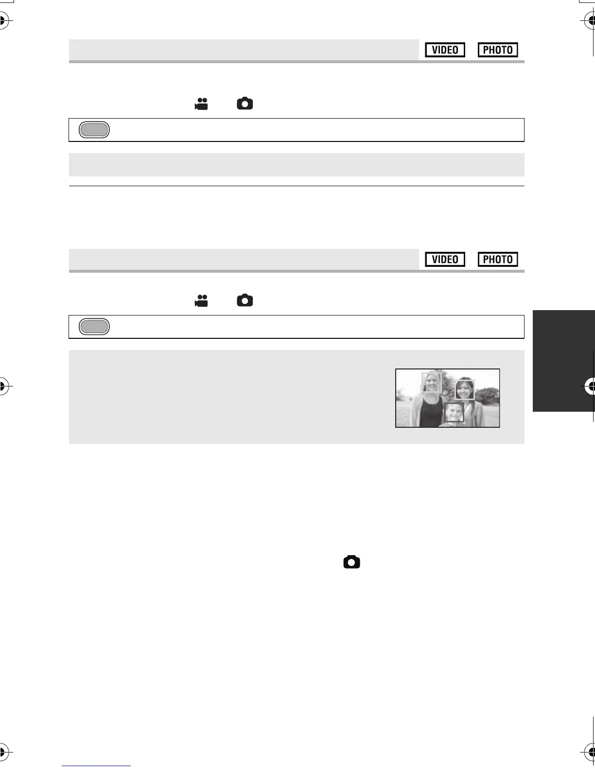 recording still pictures. Prioritized face framing will turn to green when the focus is set.