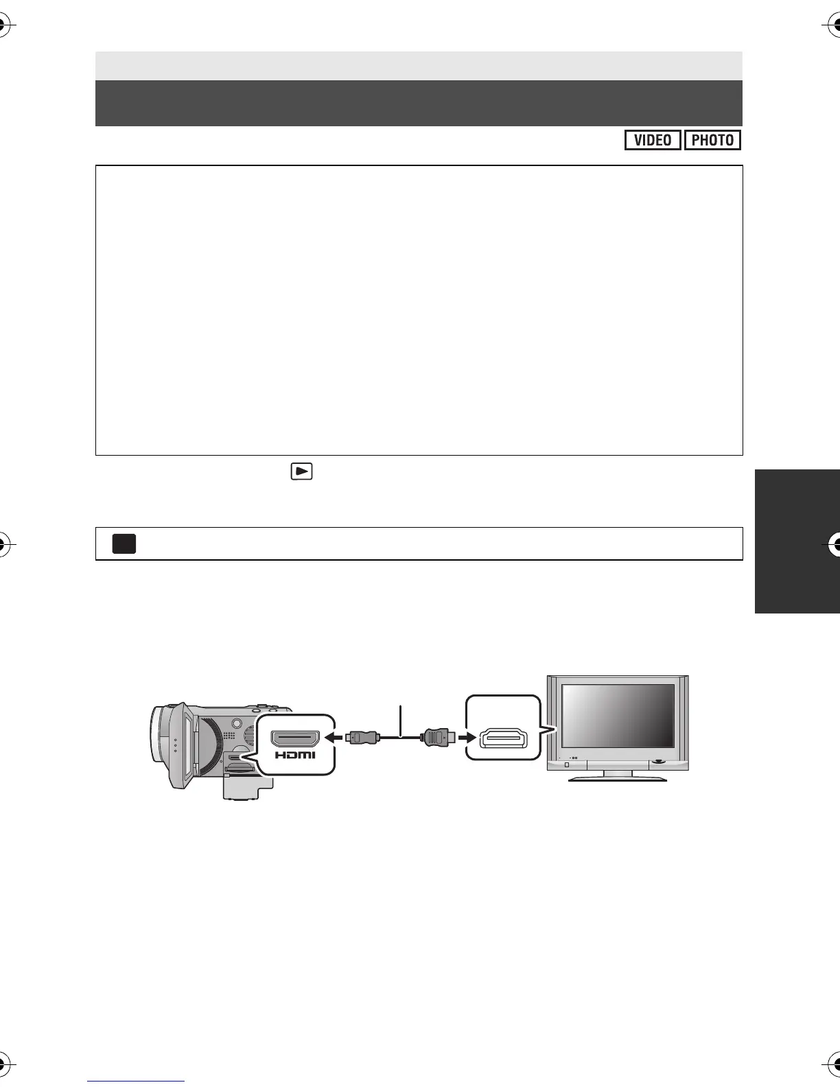 ≥ Always use a genuine Panasonic HDMI mini cable (RP-CDHM15, RP-CDHM30; optional).