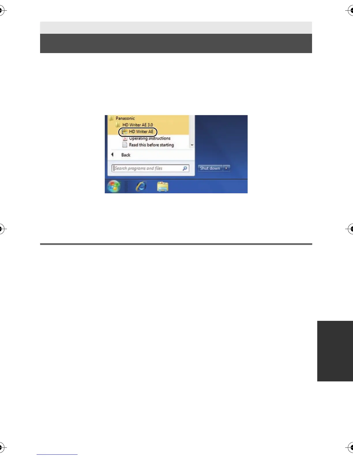 Select [Start] # [All Programs] # [Panasonic] # [HD Writer AE 3.0] #