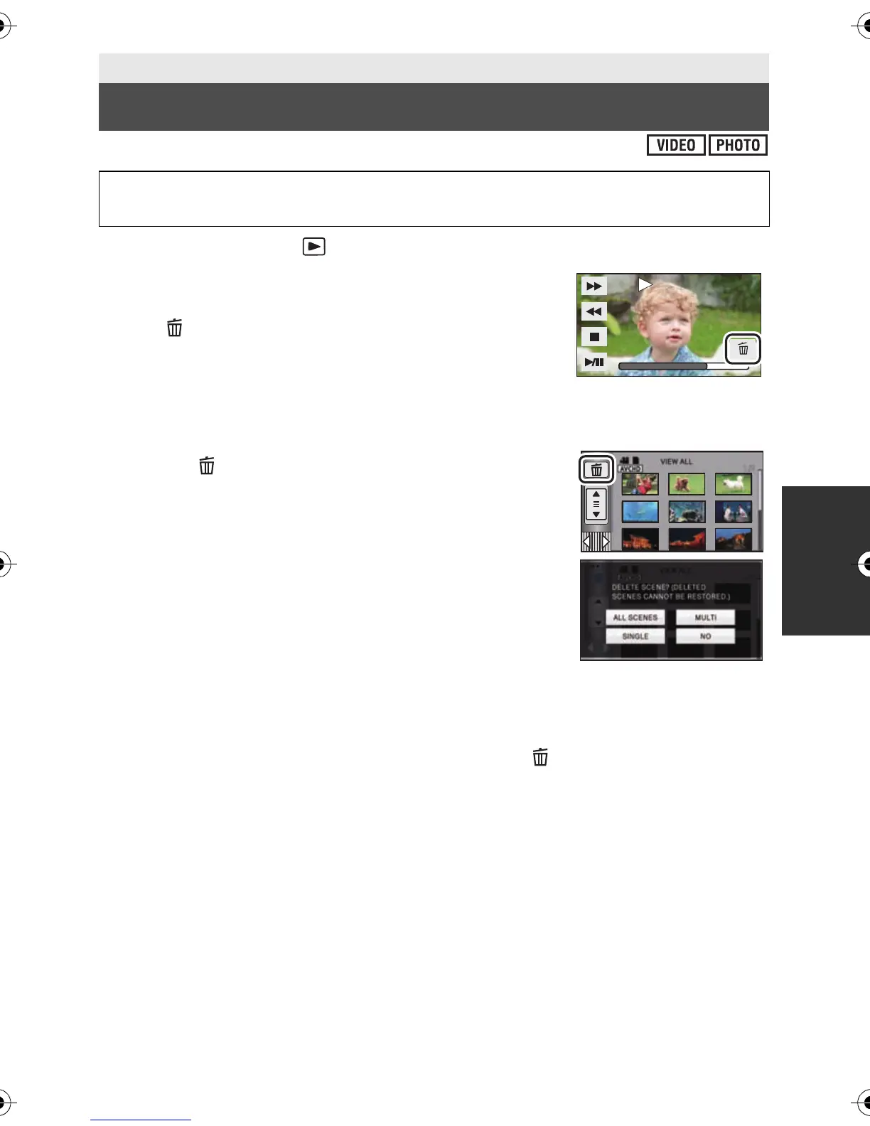 ≥ To continuously delete other scenes/still pictures, repeat steps 3-4.
