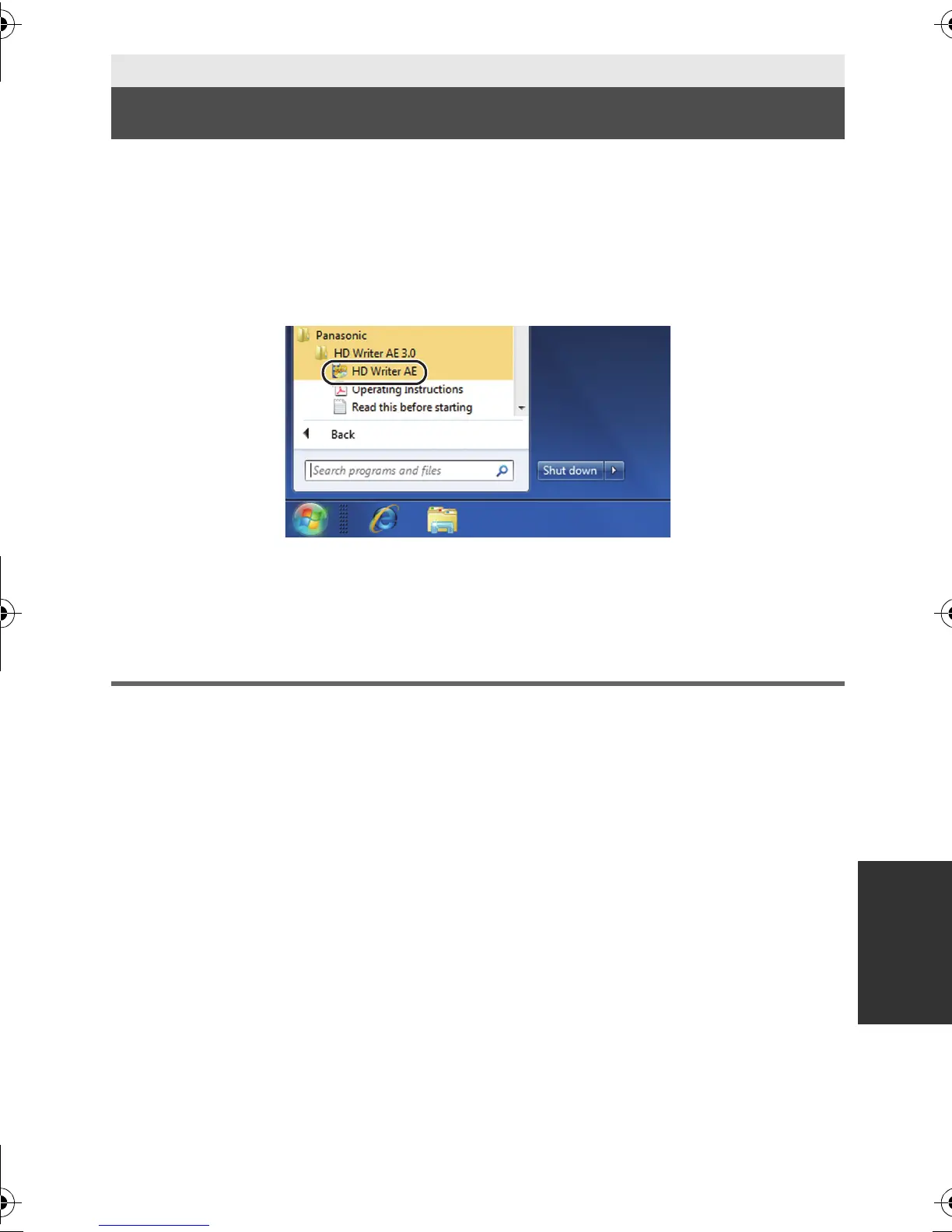Select [Start] # [All Programs] # [Panasonic] # [HD Writer AE 3.0] #
