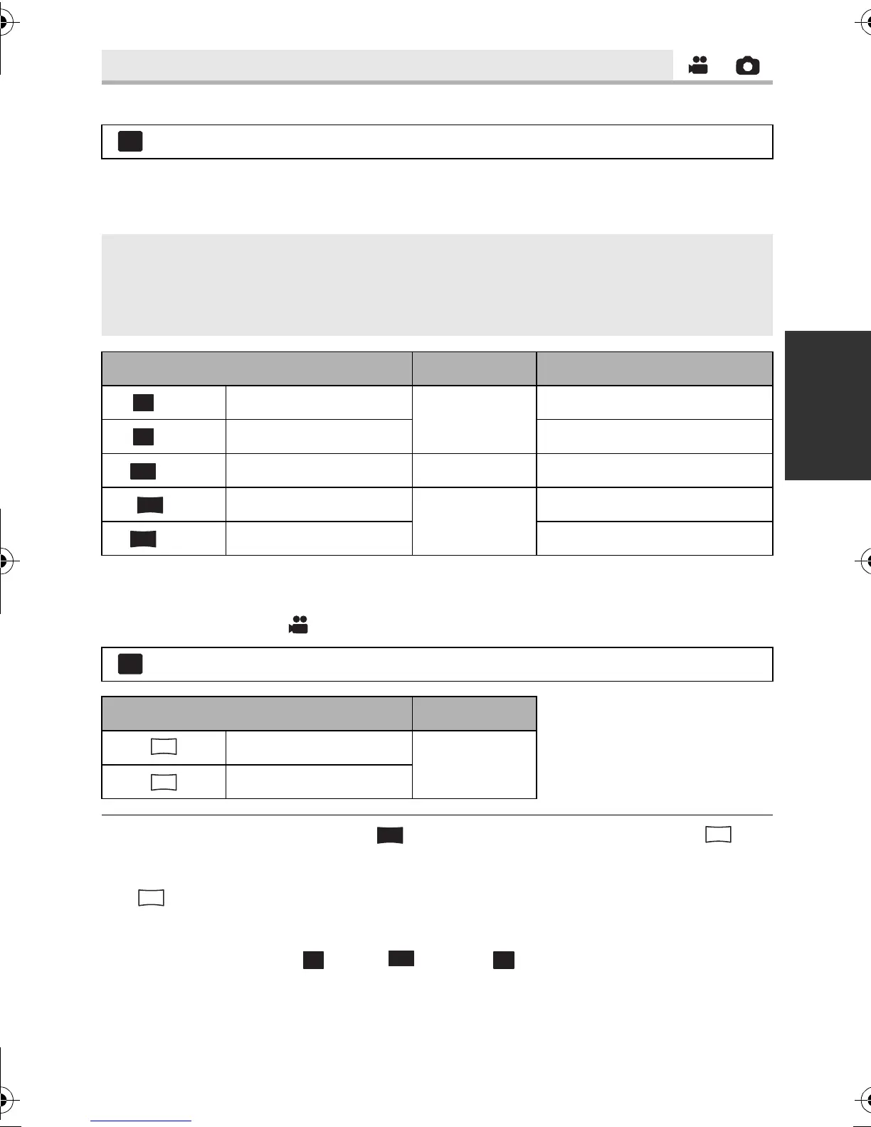 ≥ This function’s default settings are [ 3M] in Still Picture Recording Mode and in