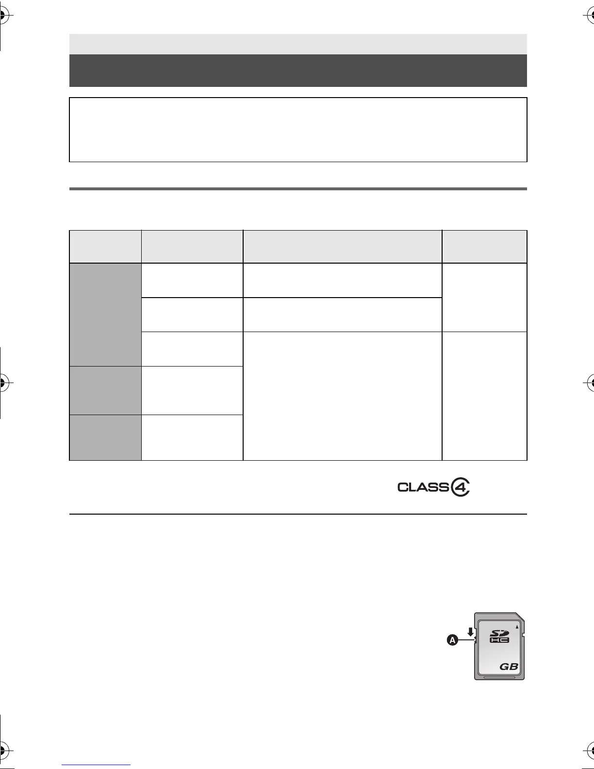 Use SD cards conforming to Class 4 or higher of the SD Speed Class Rating* for