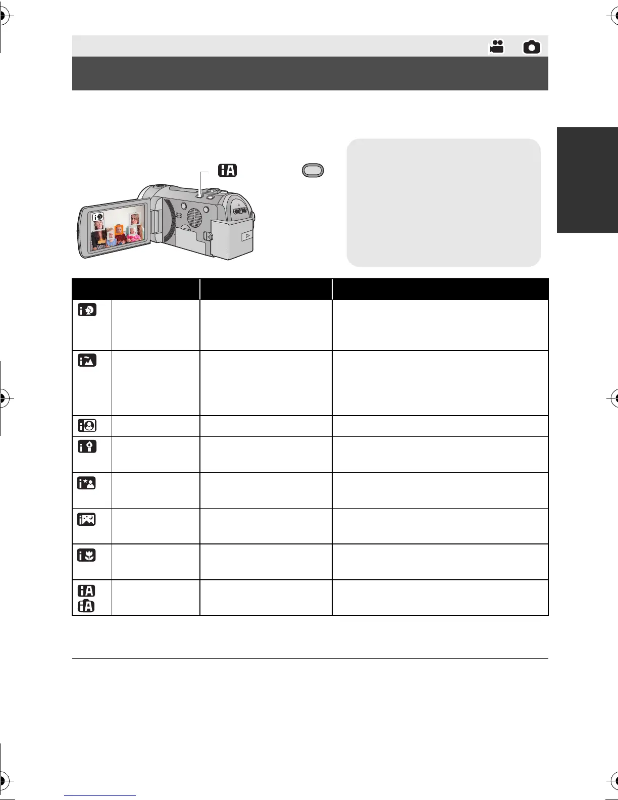 The following modes appropriate for the condition are set just by pointing the unit to what you