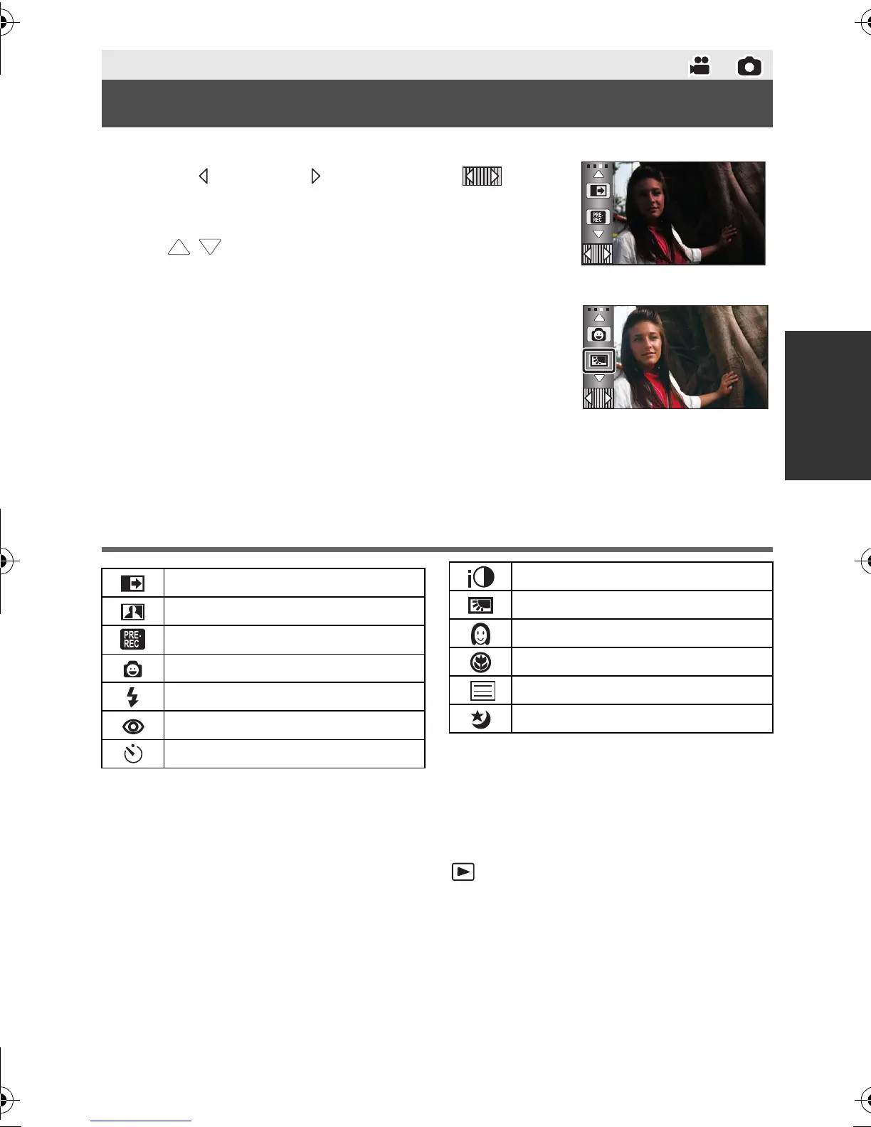 ≥ If you turn off the unit or change the mode to , PRE-REC, backlight compensation,