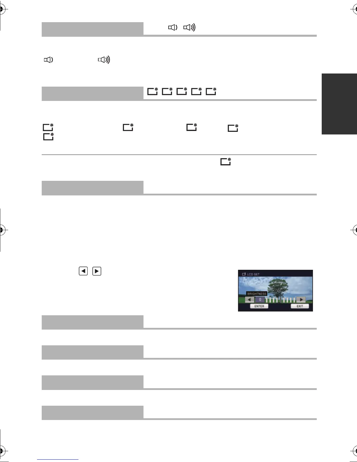 ≥ Recordable time with the battery is shortened when the LCD is made brighter.