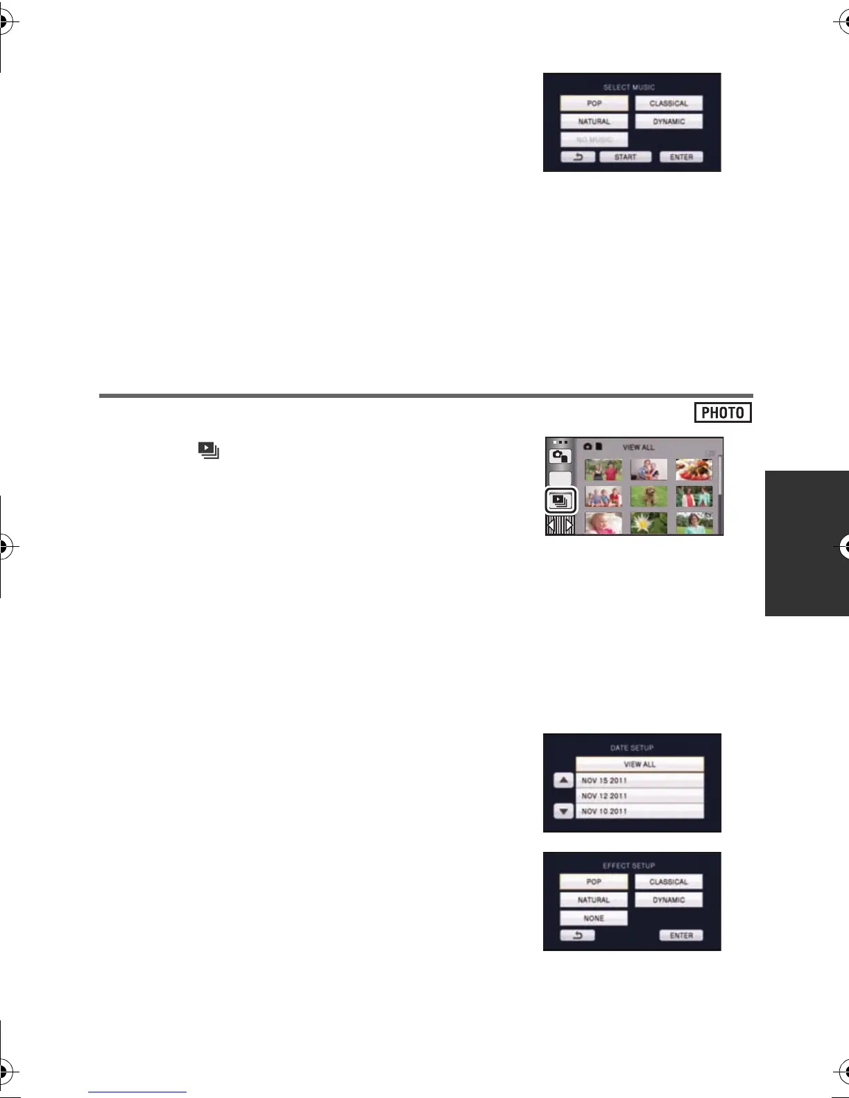 [EFFECT SETUP]: Select the effect for playback. (l 86)