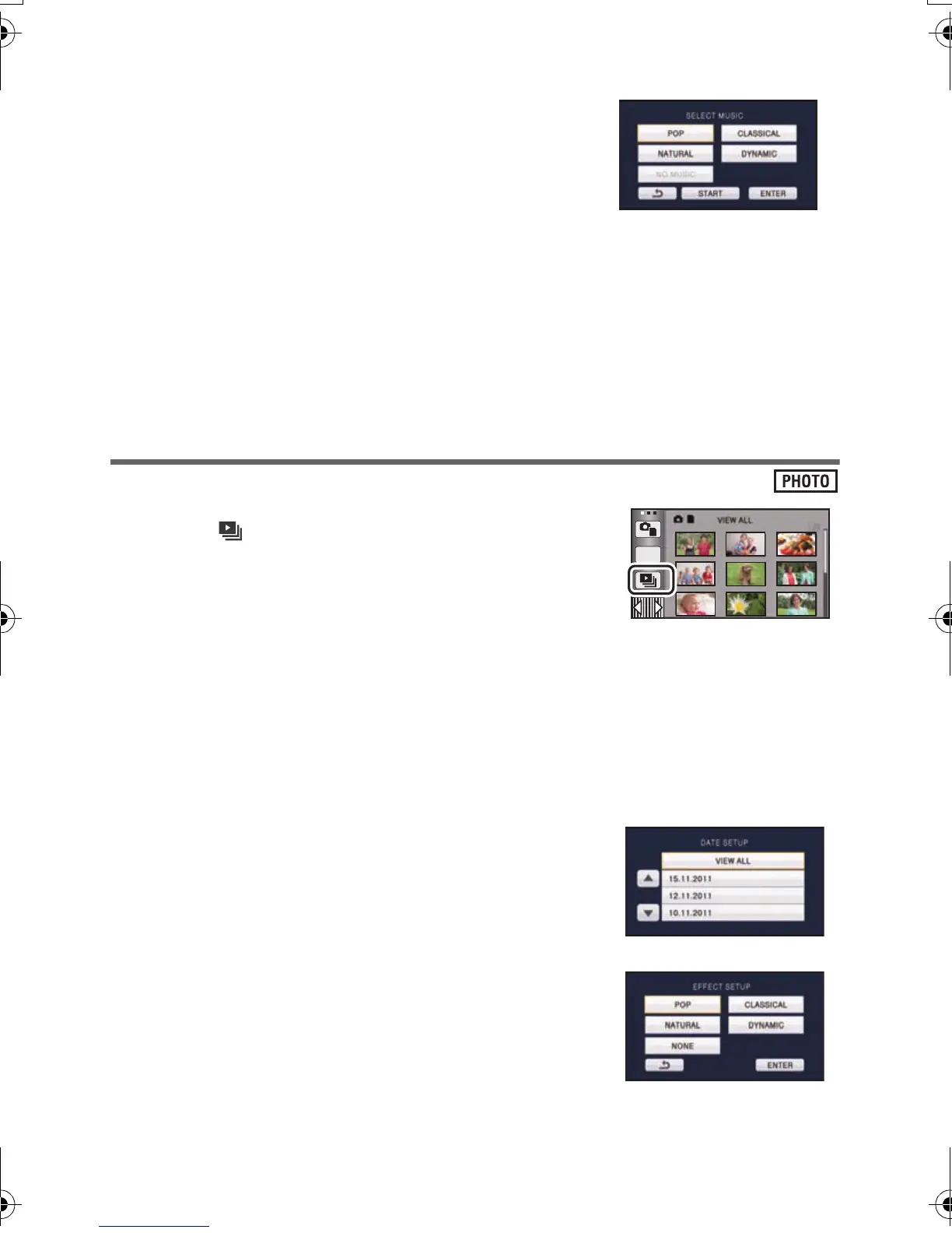 [EFFECT SETUP]: Select the effect for playback. (l 93)