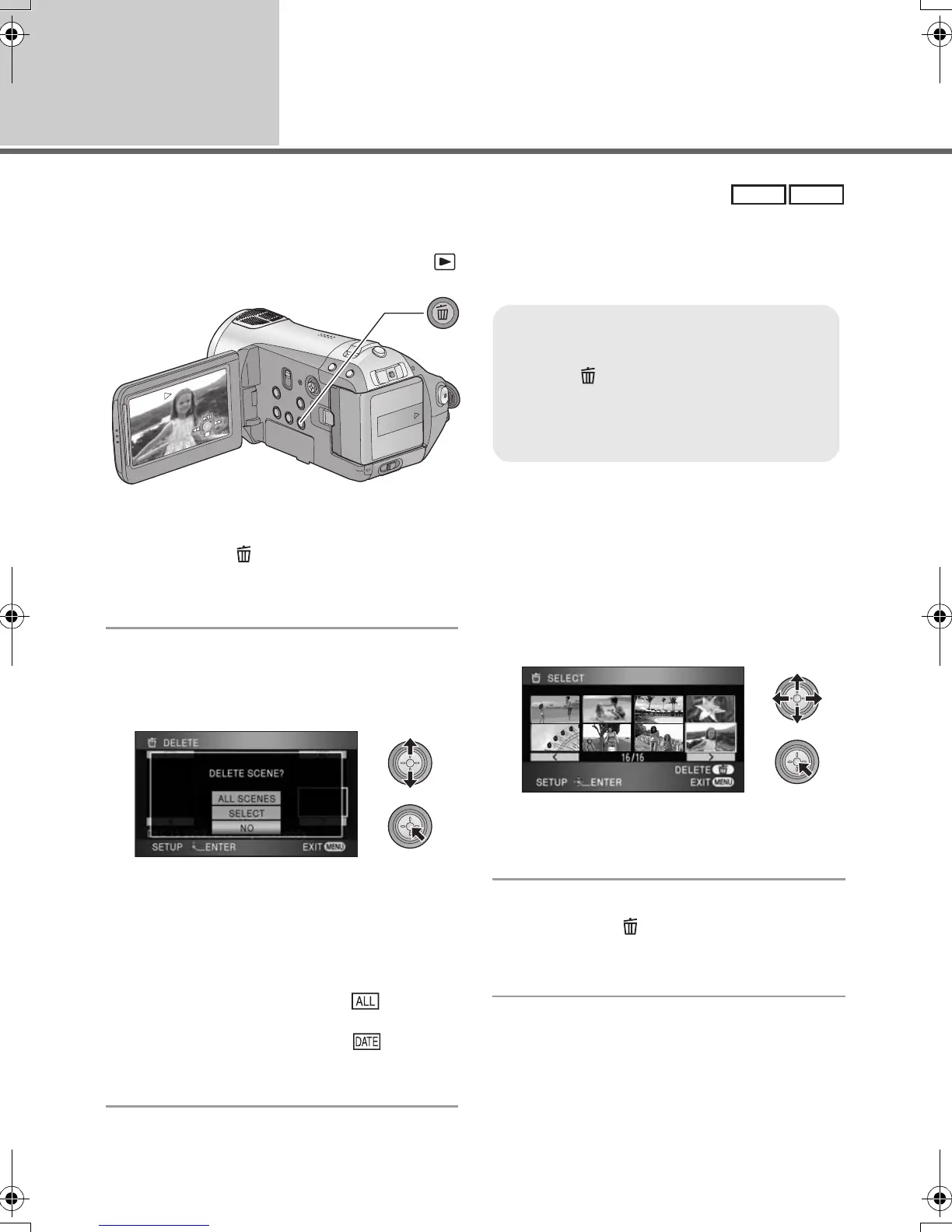 ∫ Deleting multiple scenes/still pictures from the thumbnail display