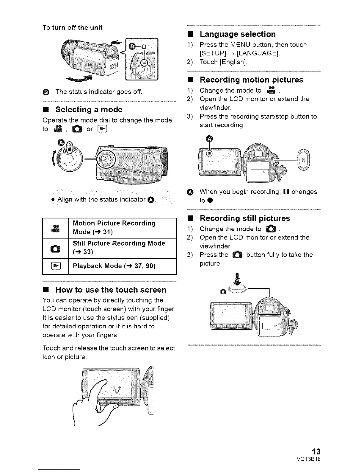 • Recording still pictures
