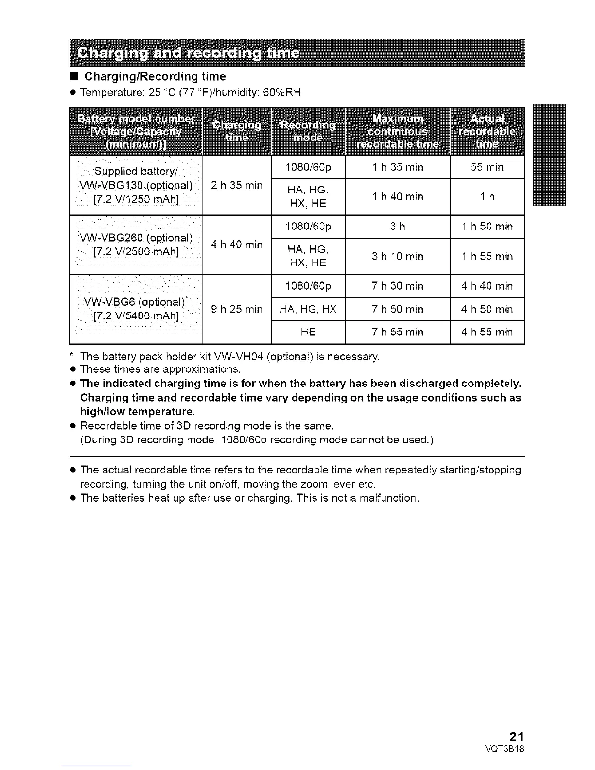 • Charging/Recording time