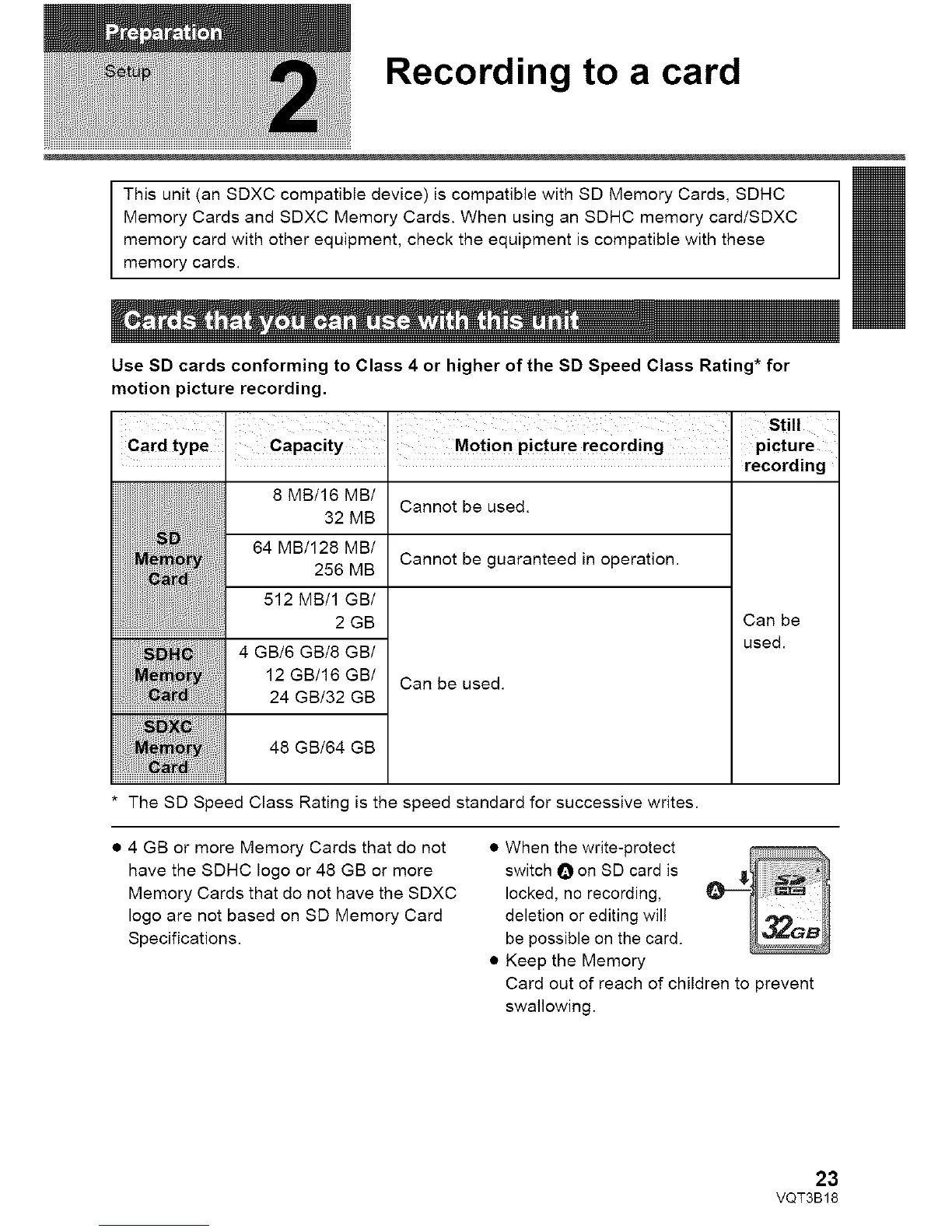 This unit (an SDXC compatible device) is compatible with SD Memory Cards, SDHC
